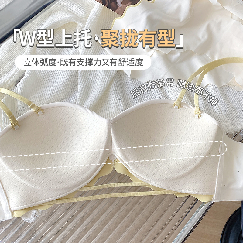 内衣女小胸聚拢显大收副乳防下垂性感无肩带防滑隐形平胸贴文胸罩