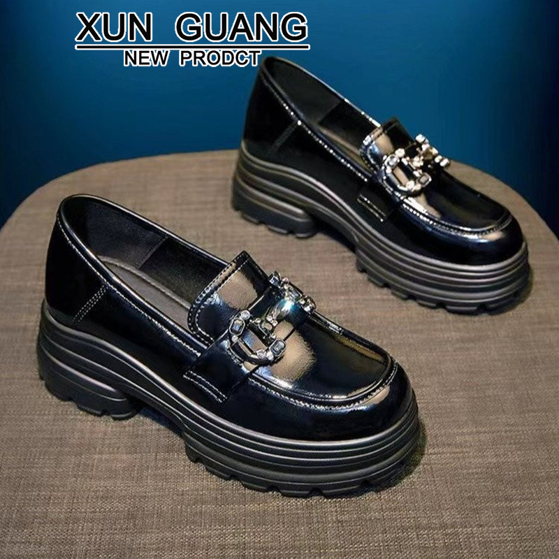 厚底乐福鞋女春季新款学院风jk百搭一脚蹬增高小皮鞋漆皮单鞋