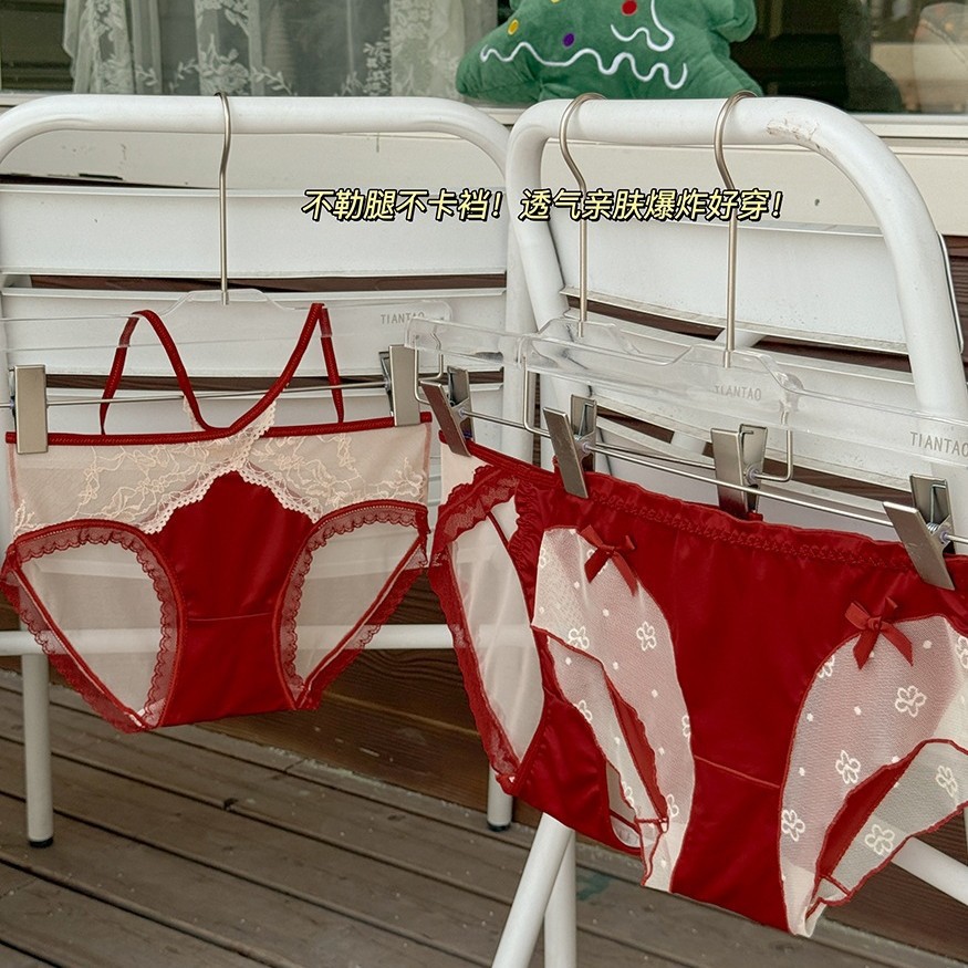 过年祝贺圣诞本命年红色内裤女士红红火火纯棉底裆新年三角裤女生