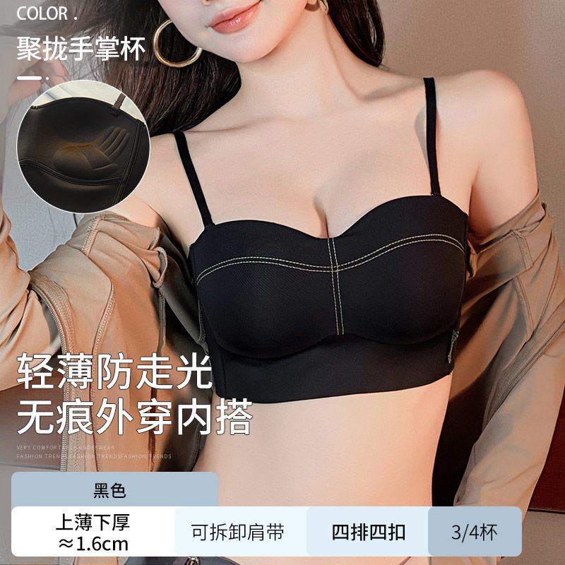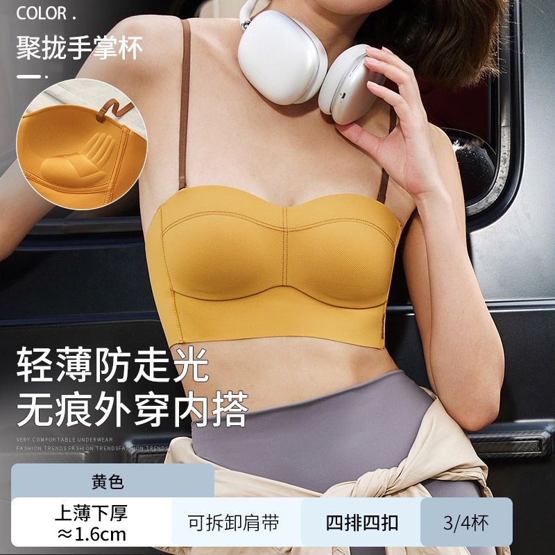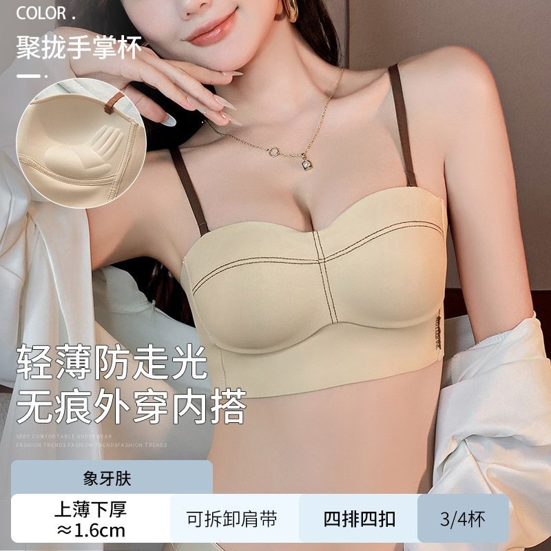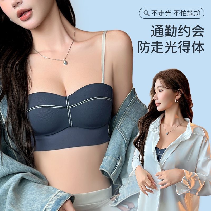 无痕内衣女小胸聚拢显大夏季薄款抹胸防走光裹胸性感纯欲风文胸罩