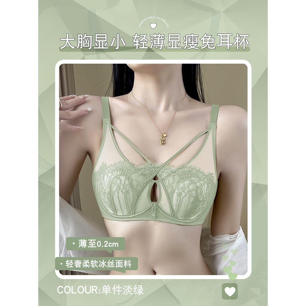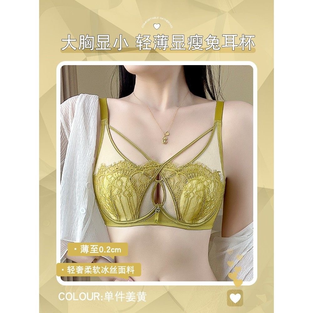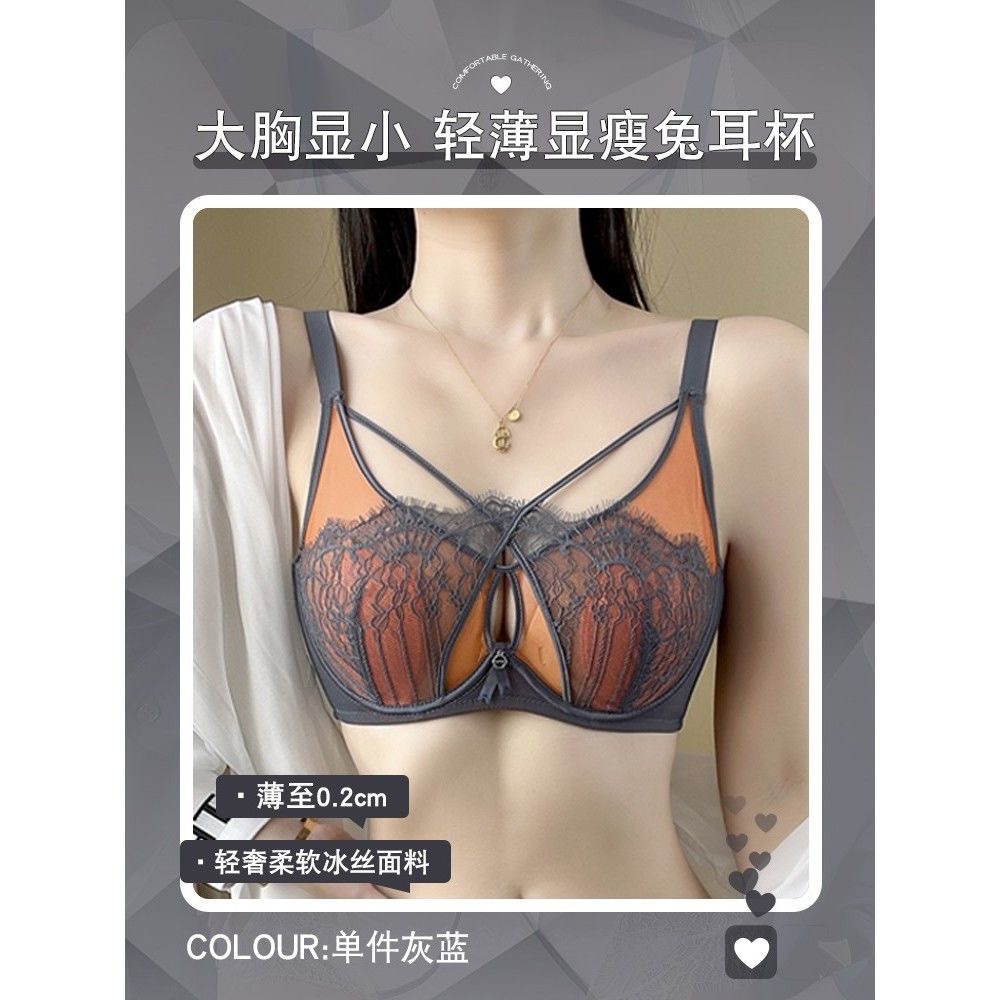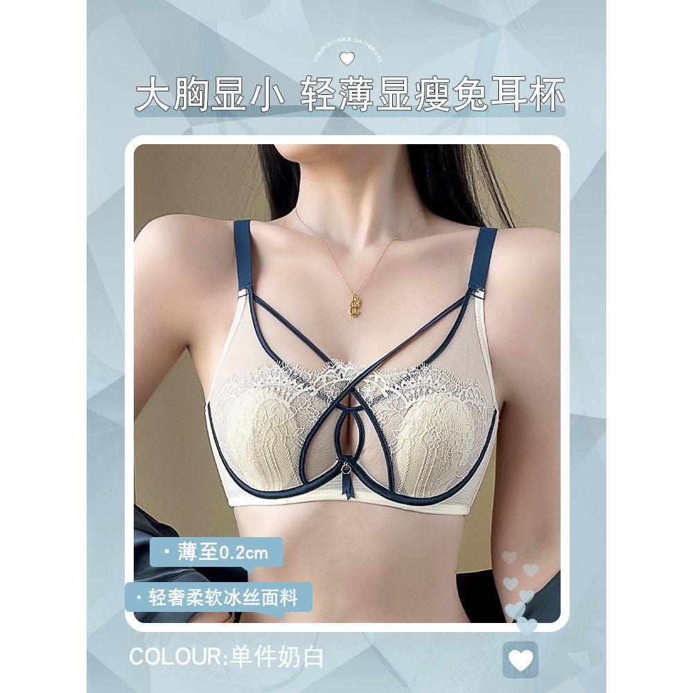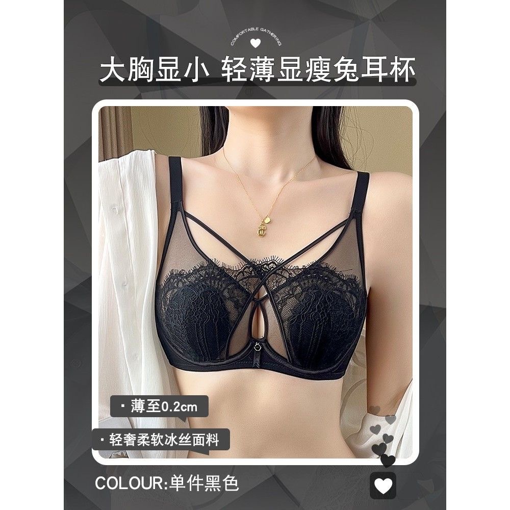 兔耳朵法式内衣女大胸显小薄款调整型收副乳防下垂软钢圈聚拢文胸