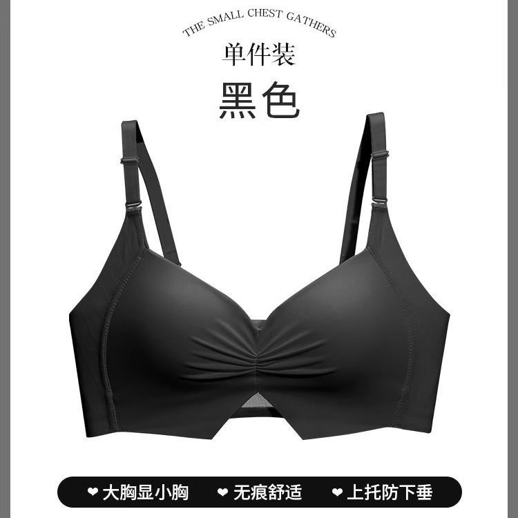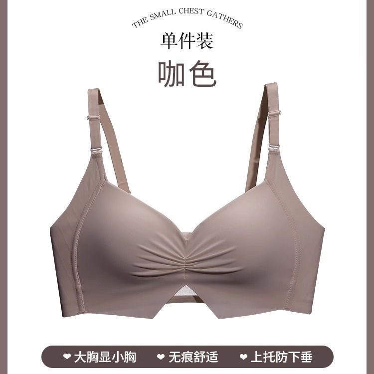 薄款光面无痕内衣女大胸显小舒适聚拢上托收副乳防下垂无钢圈文胸