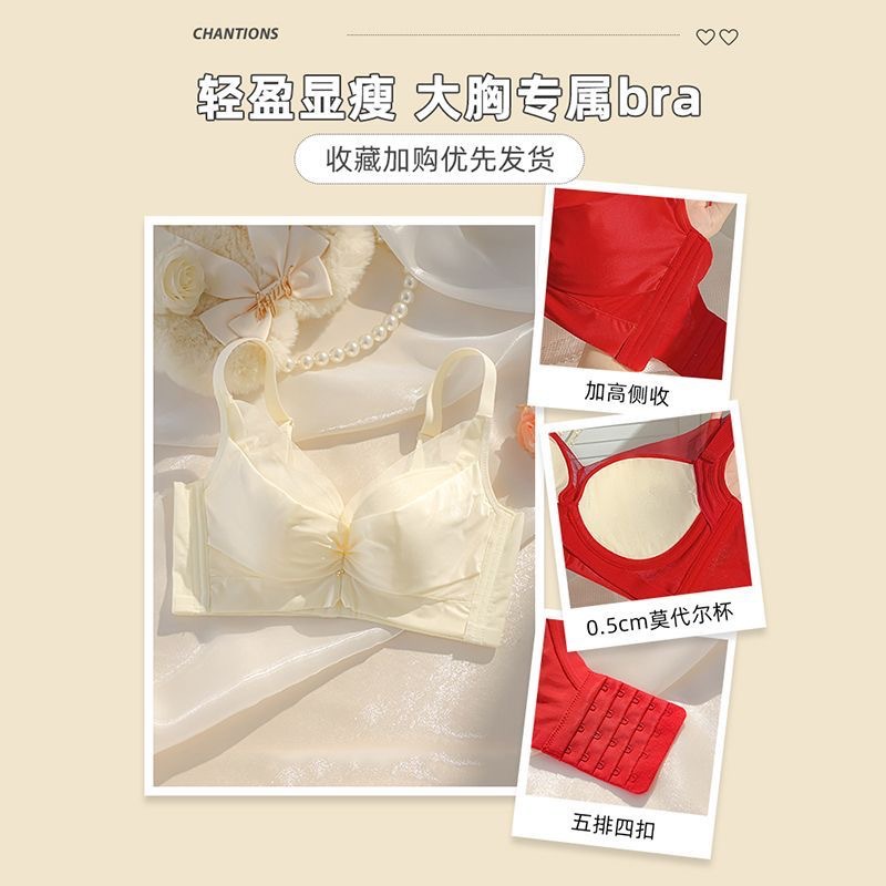 无痕薄款内衣女大胸显小调整型上托聚拢收副乳防下垂支撑文胸