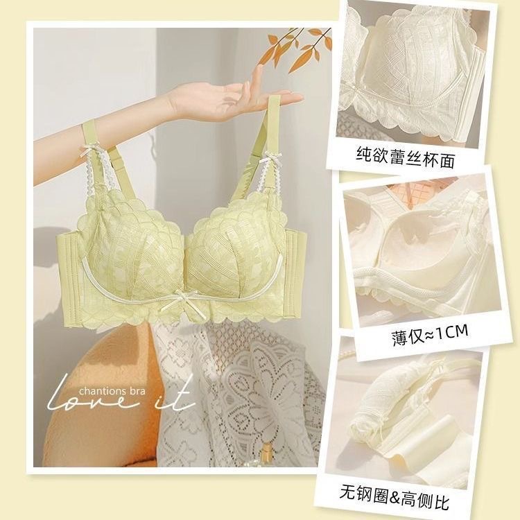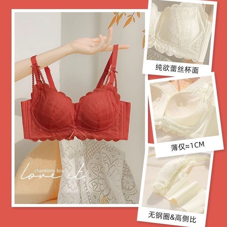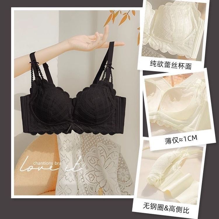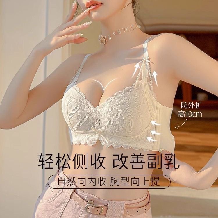 聚拢内衣女小胸显大无钢圈收副乳防下垂蕾丝性感文胸罩厚杯