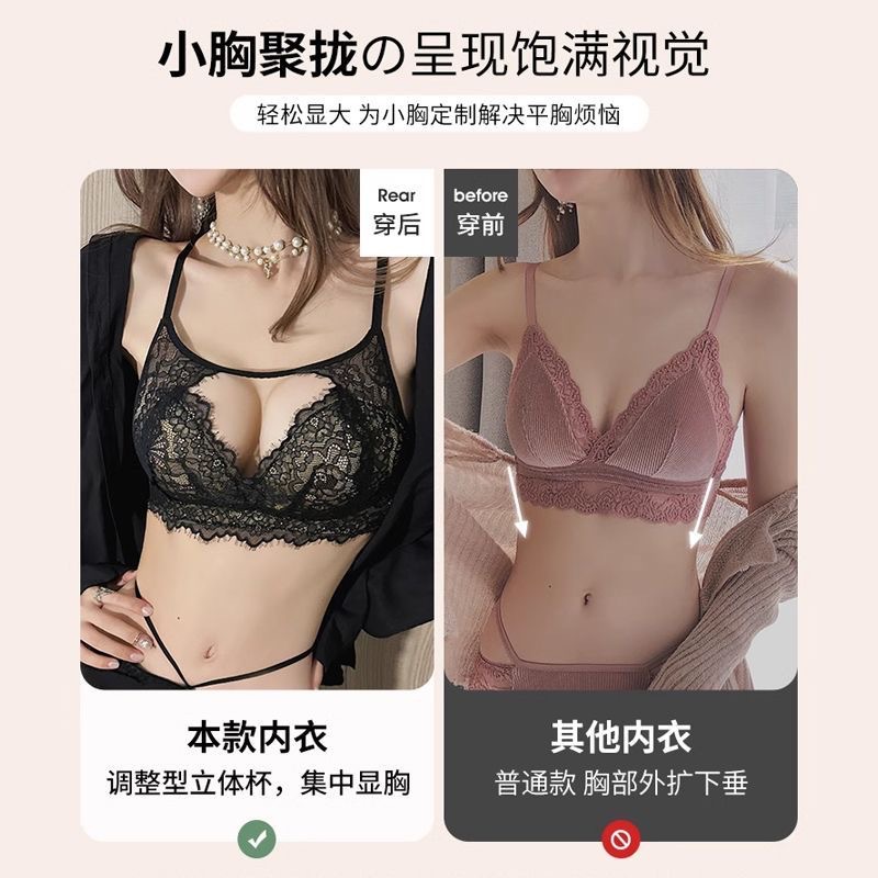 法式蕾丝内衣女小胸聚拢提胸显大无钢圈收副乳调整型美背文胸套装