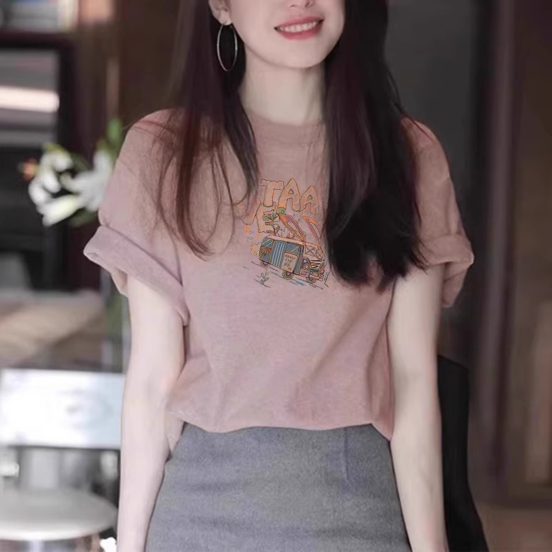 韩版卡通印花正肩短袖t恤女夏季新款宽松设计感小众上衣ins