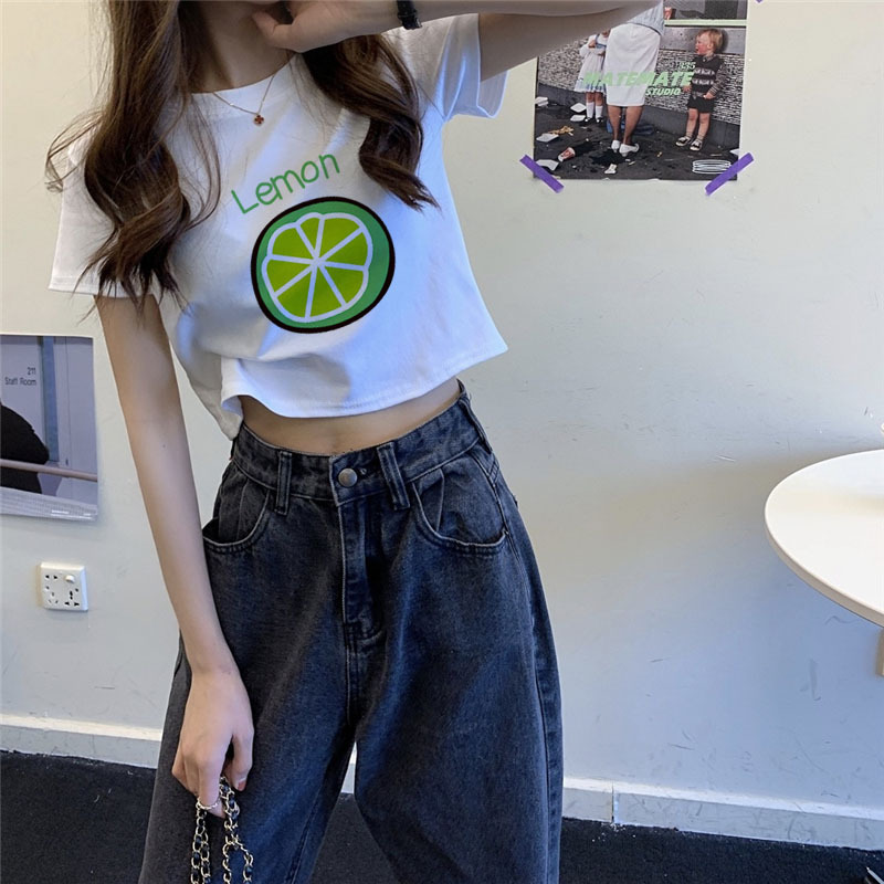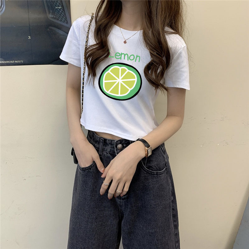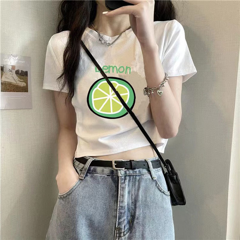 欧美纯欲少女晕染玫瑰印花短袖T恤圆领复古修身基础百搭上衣