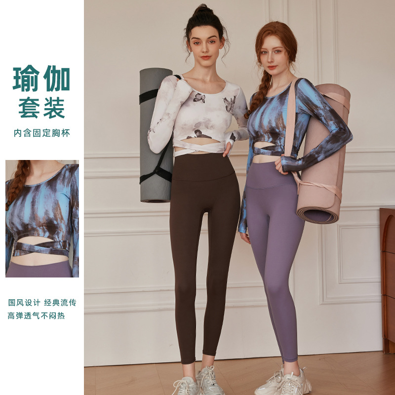 新款国风瑜伽服长袖套装健身高级运动套装两件套健身外穿显瘦气质
