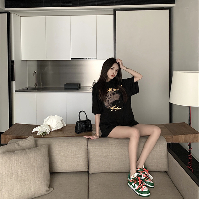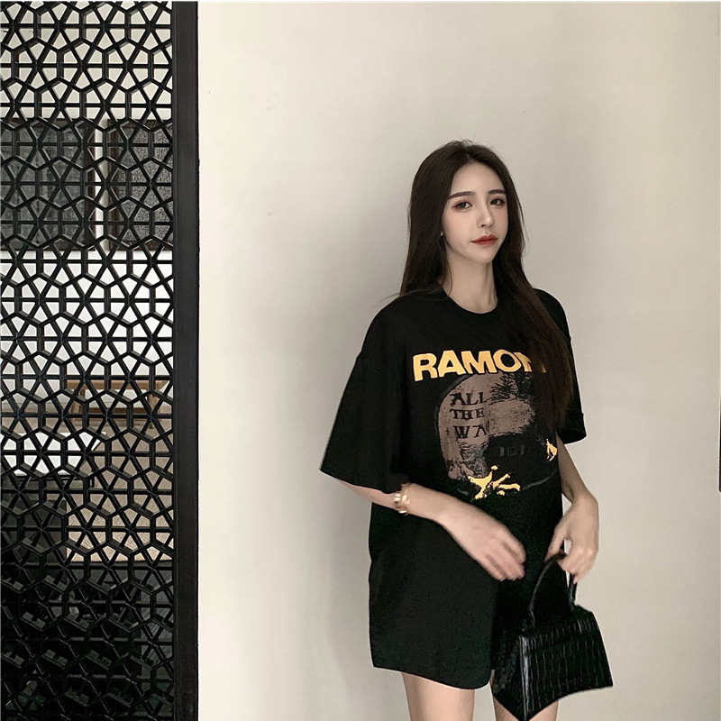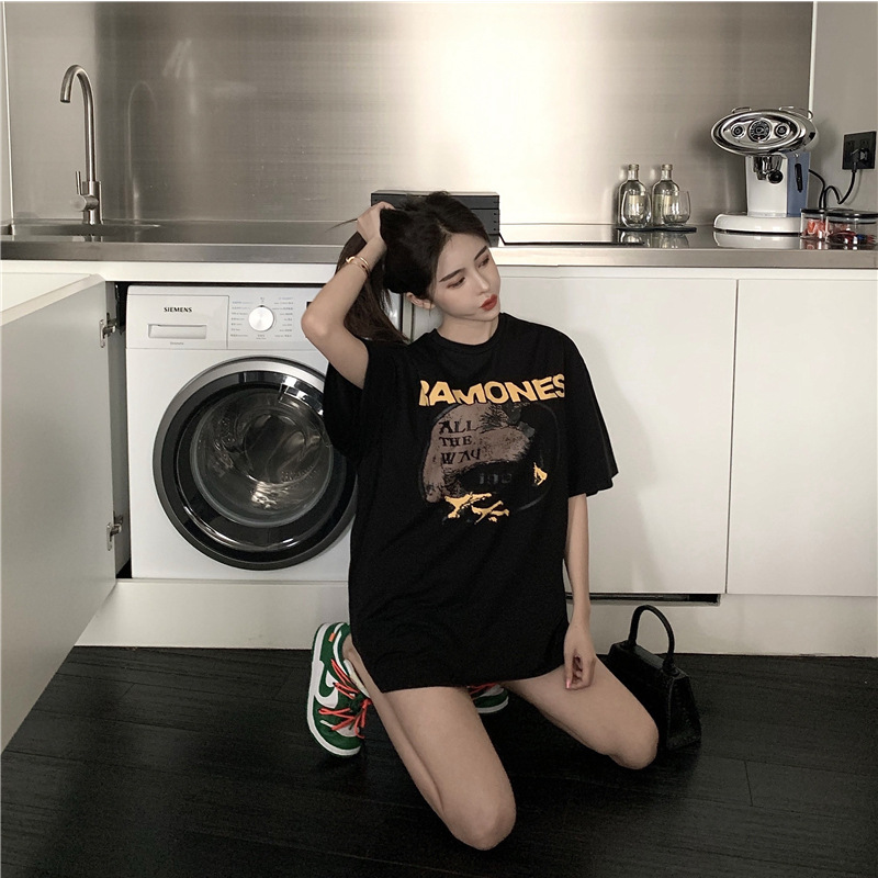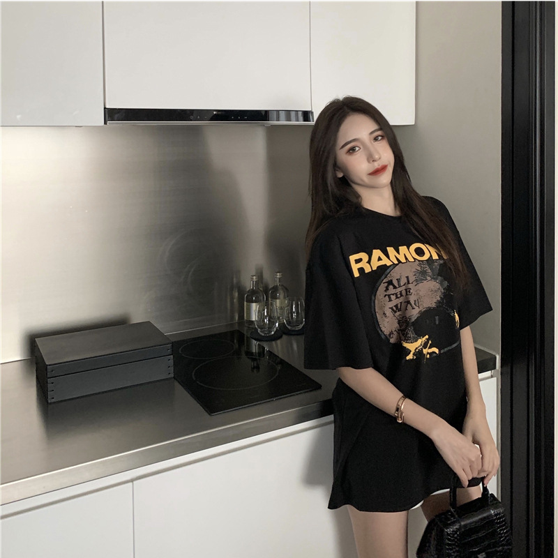 黑色短袖t恤女网红暗黑系上衣ins潮夏季新款印花日系学生宽松