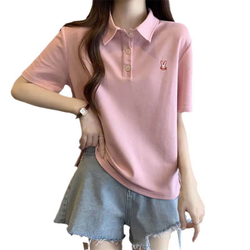 夏季新款polo领短袖T恤女韩版卡通刺绣休闲通勤打底半袖上衣
