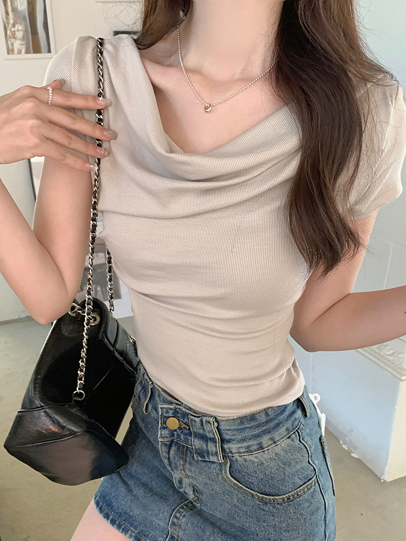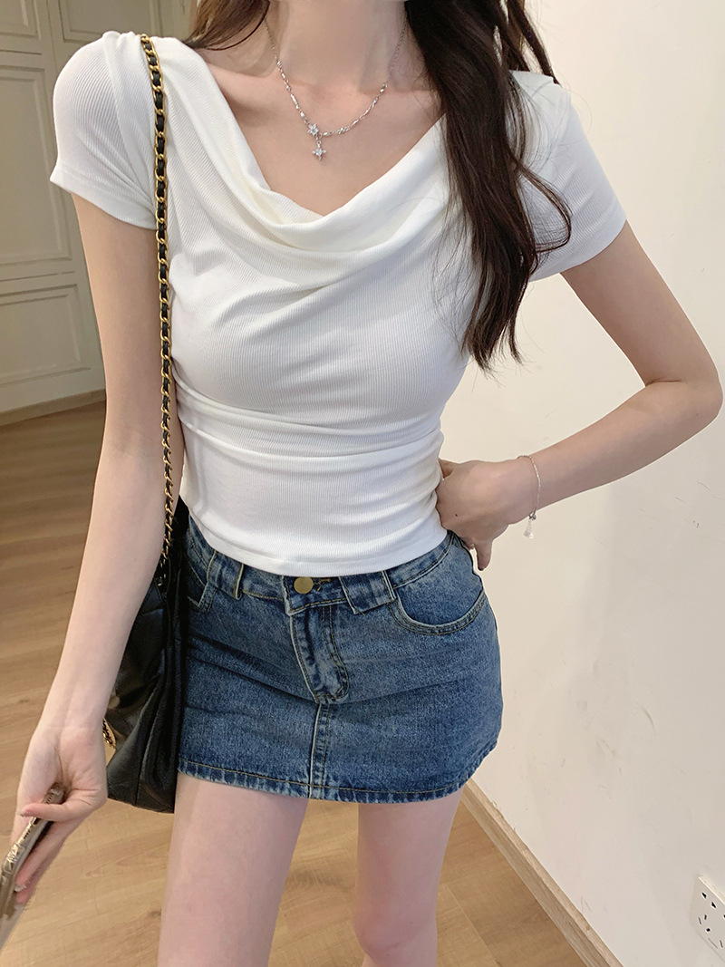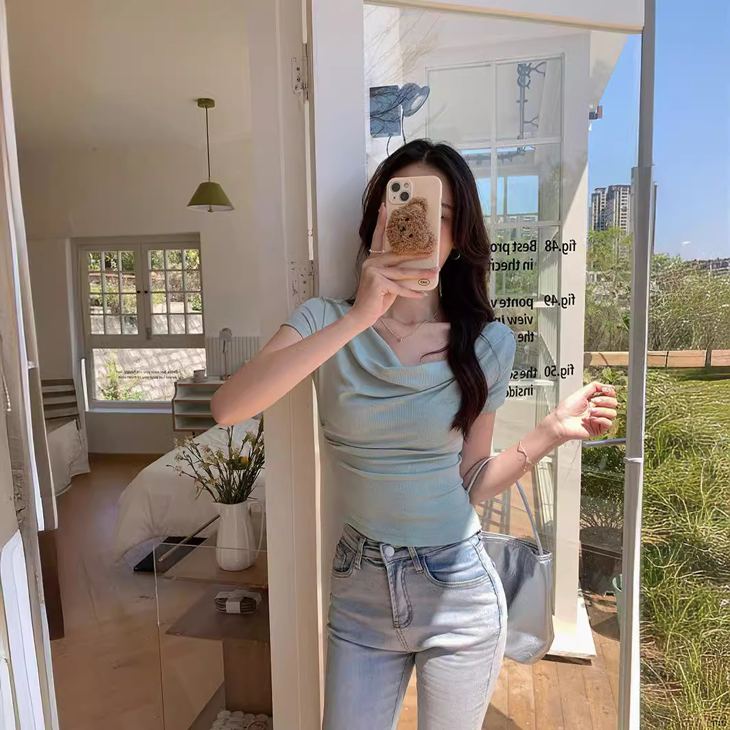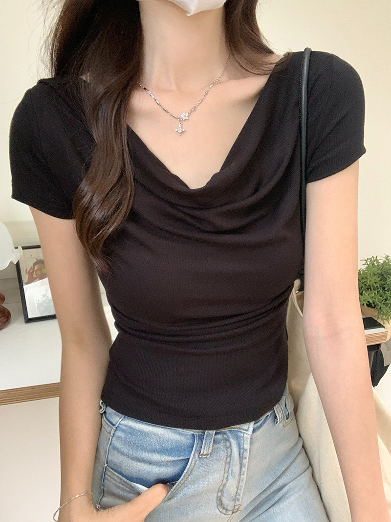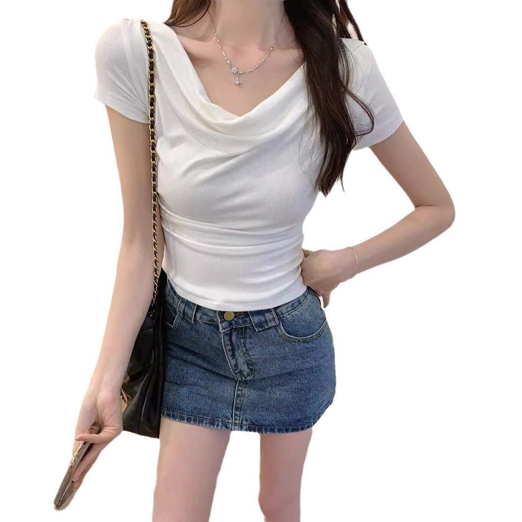 设计感小众口水领修身显瘦短袖T恤女装夏季新款辣妹露肩温柔上衣