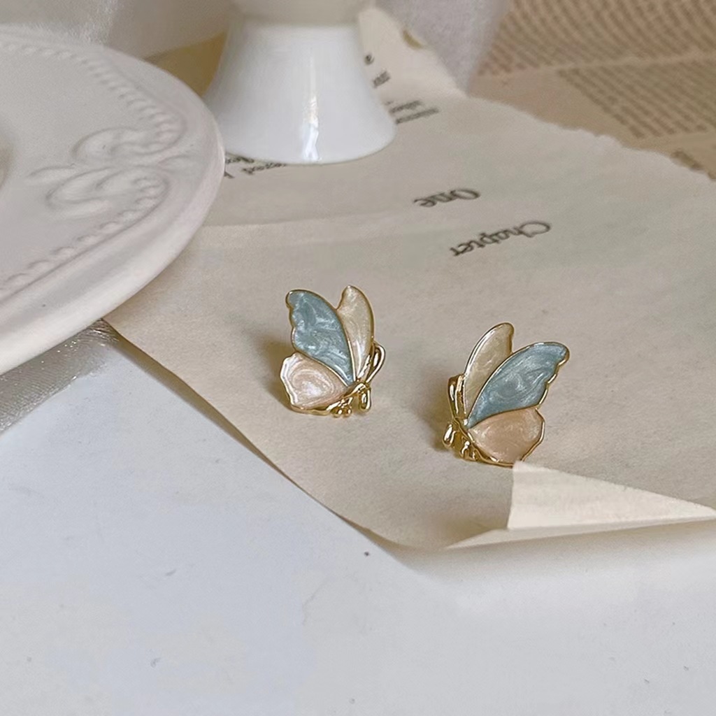 彩色滴釉蝴蝶精致耳环韩国气质优雅百搭配饰女耳饰耳钉925银针