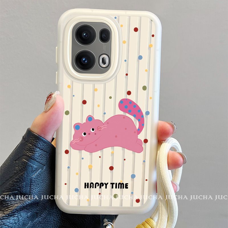 opporeno13pro手机壳带挂绳新款reno13高端可爱彩色波点猫咪
