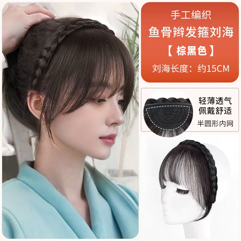新款发箍刘海一体式遮白假刘海减龄防滑鱼骨发箍自然前额假刘海