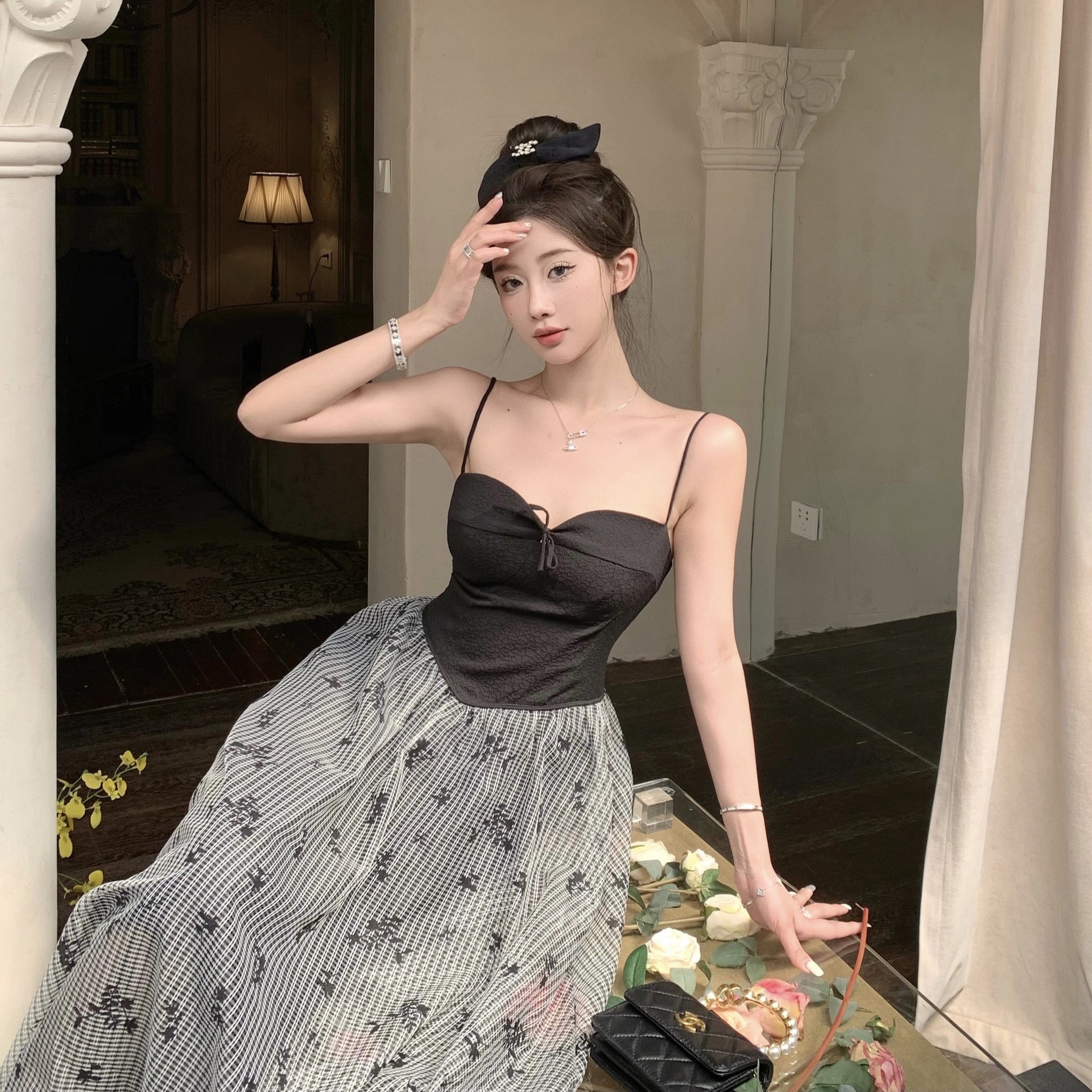 法式复古赫本风碎花吊带连衣裙女春夏收腰显瘦高级感纯欲风长裙