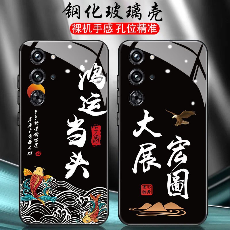 红魔10Pro手机壳男款红魔10Pro+玻璃壳全包艺术感防摔套国风文字
