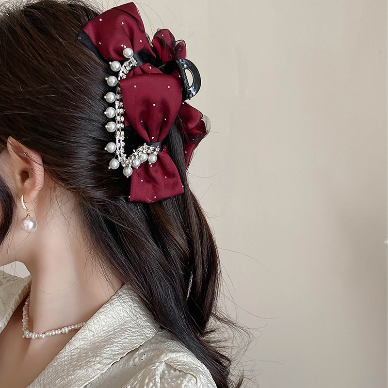 新款高级感在逃公主发夹蝴蝶结珍珠流苏抓夹鲨鱼夹发饰头饰品