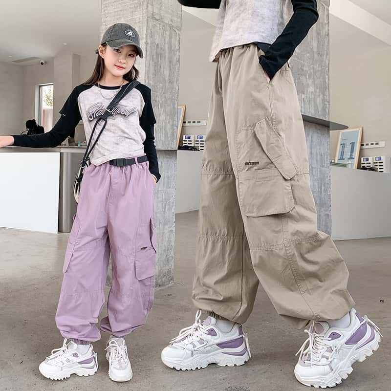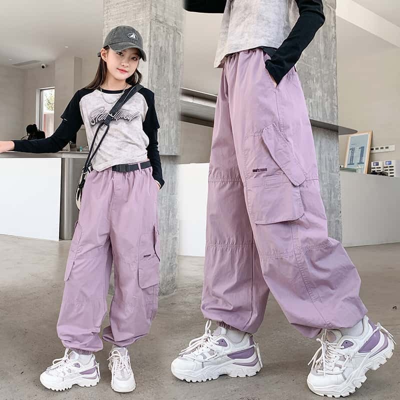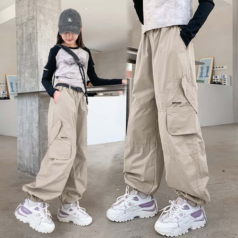 女童春秋裤子儿童直筒阔腿裤女大童初中生嘻哈街舞潮酷穿搭工装裤