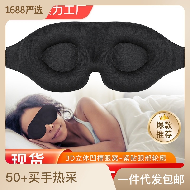 亚马逊热卖黑色3D立体睡眠眼罩遮光透气记忆棉护眼罩四件套现货