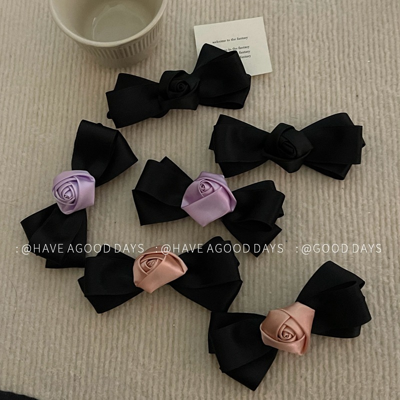 甜美少女蝴蝶结玫瑰发夹气质小众设计感头饰发饰高级感边夹设计感