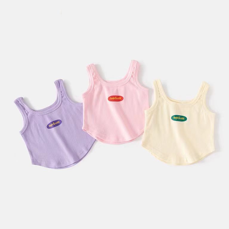 夏季女童背心吊带宝宝洋气儿童个性潮韩版字母纯色不规则外穿内搭