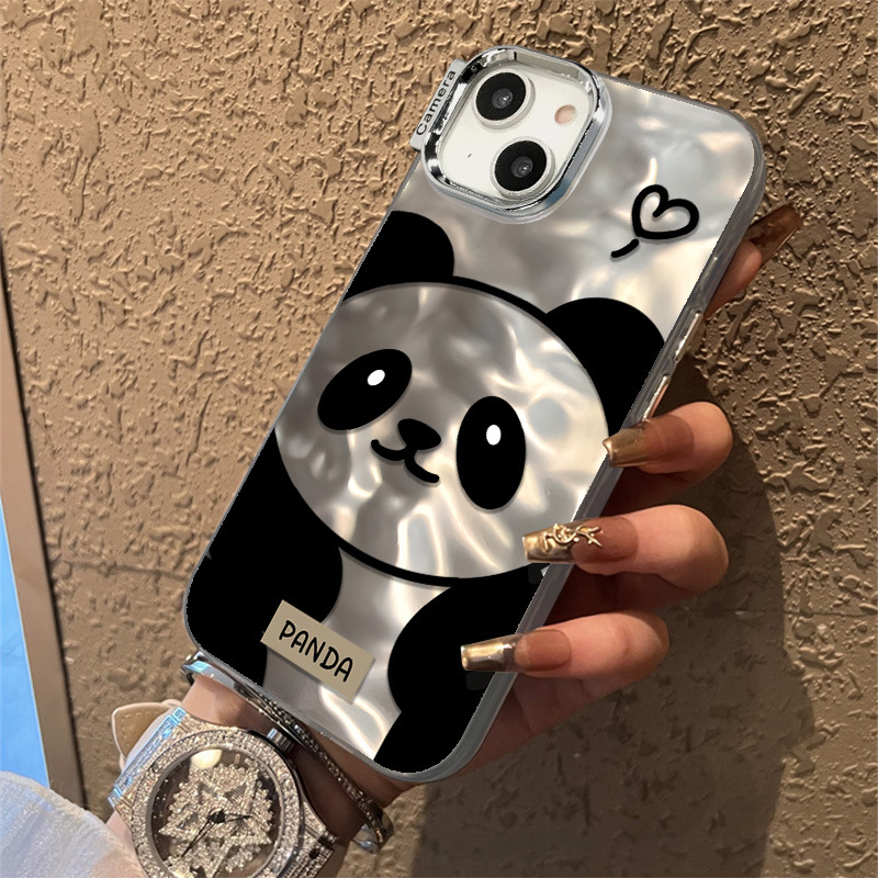 可爱大熊猫水波纹适用苹果15手机壳14promax新款13高级感iPhone16