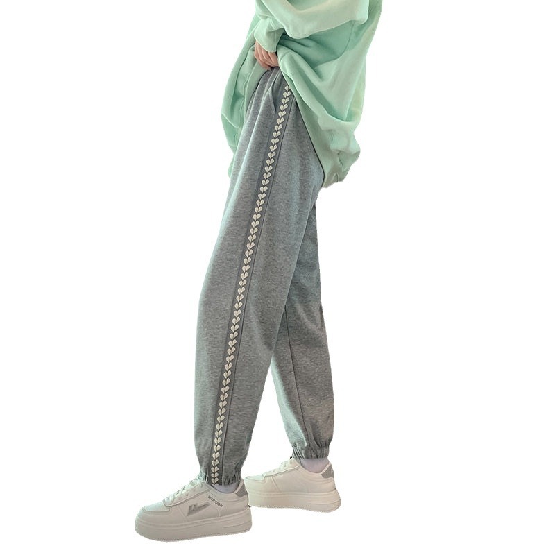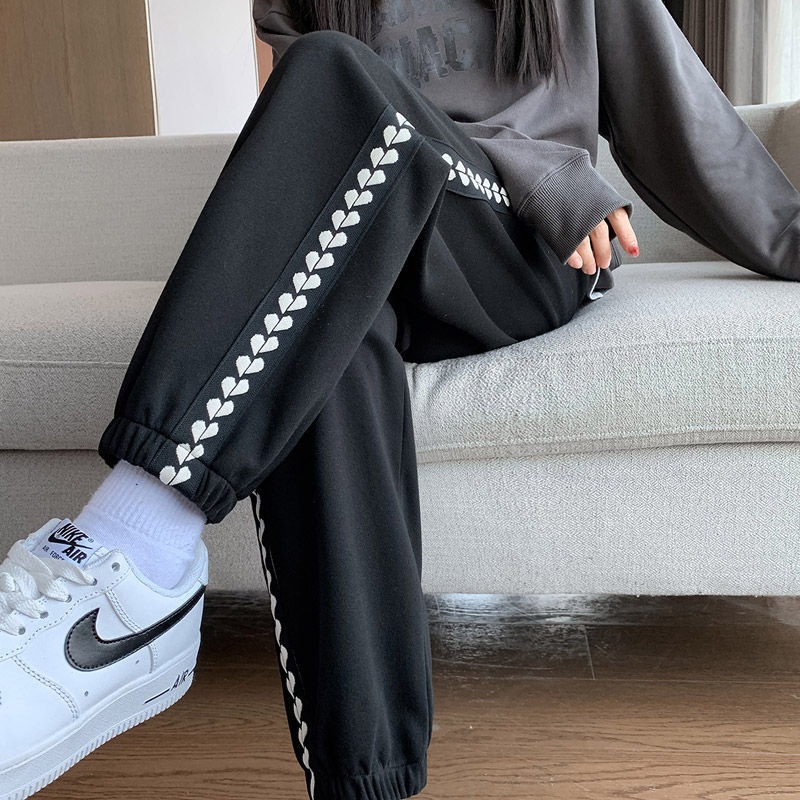 女童裤子春秋款新款中大儿童女裤运动裤织带爱心卫裤春装长裤