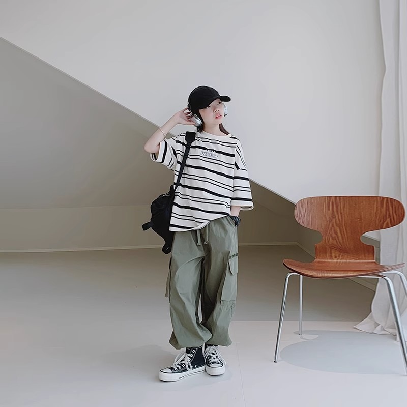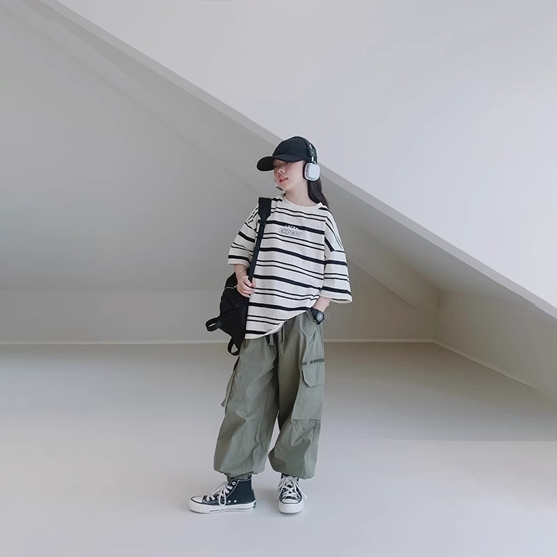 女童休闲裤夏装新款女大童宽松洋气束脚裤儿童休闲薄款工装裤