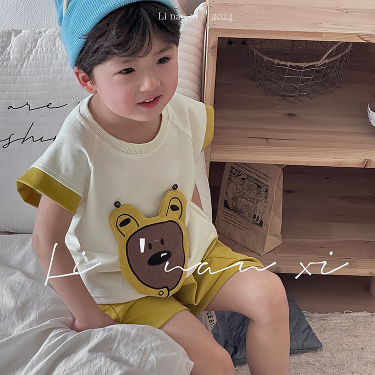 男童套装24夏新款男女童可脱卸考拉立体绣花两件套宝宝上衣+裤子