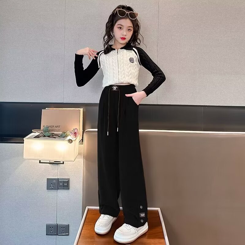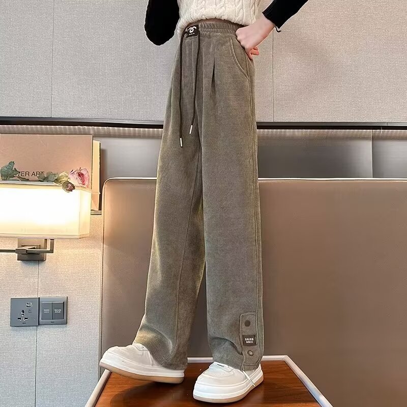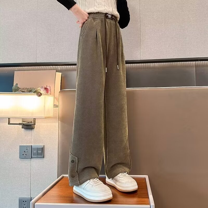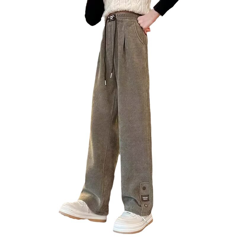 女童春秋裤子新款儿童阔腿裤中大童春秋季灯芯绒休闲直筒长裤