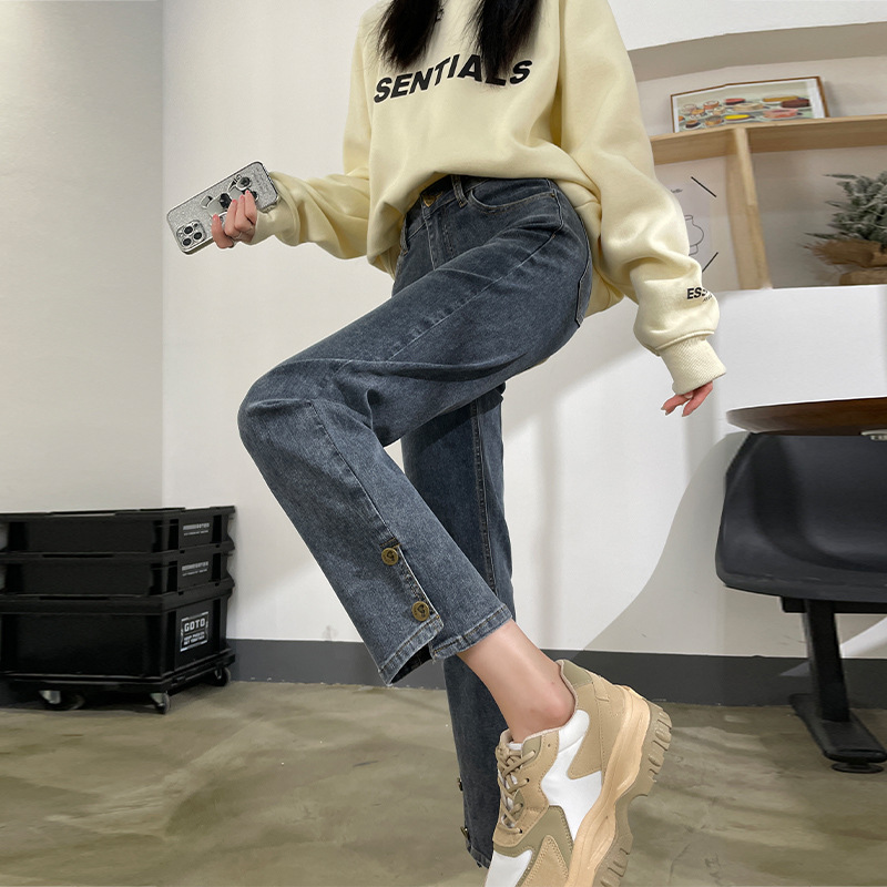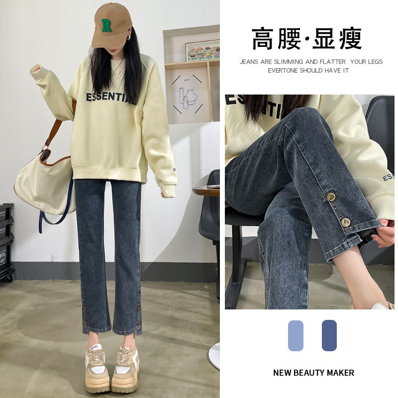 大码女装年胖MM春夏新款时尚直筒牛仔裤高腰显瘦九分烟管裤子