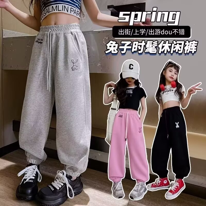 女童春秋卫裤运动裤休闲新款儿童中大童女孩宽松长裤春装童装