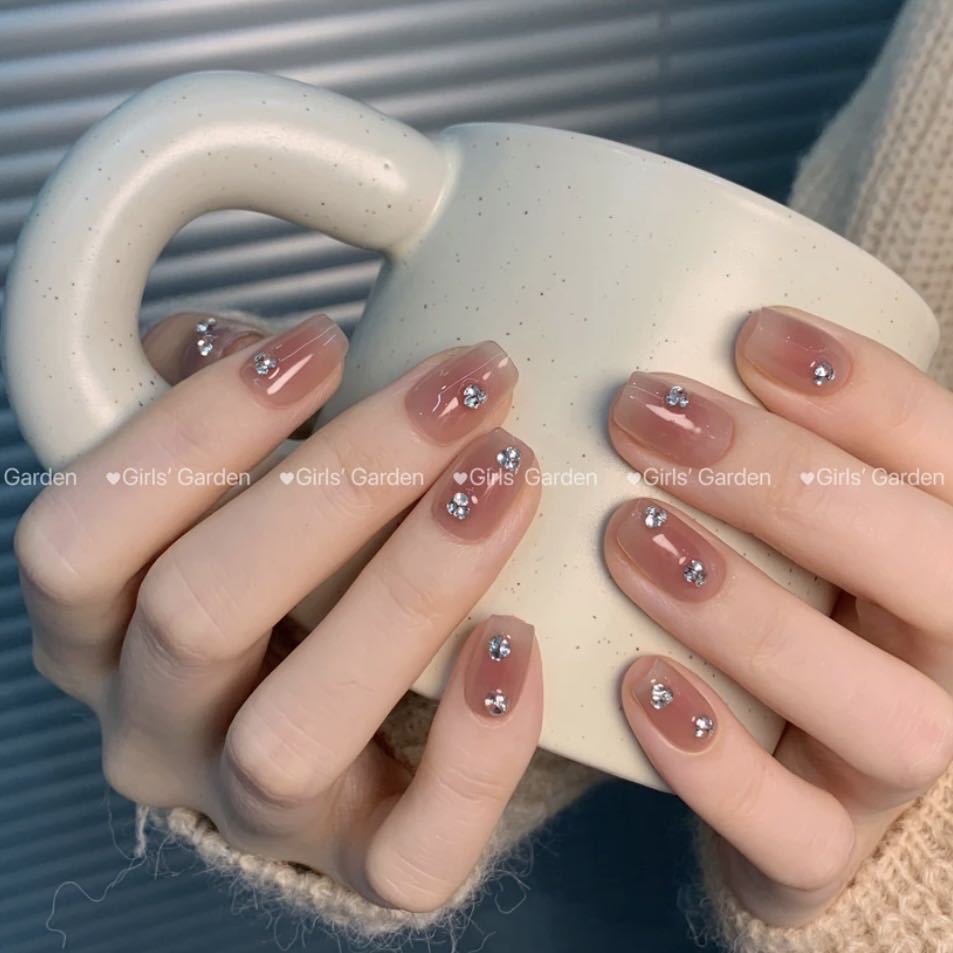纯手工穿戴甲美甲贴片秋冬显白烟熏豆沙水晶香槟可拆卸手工甲贴片