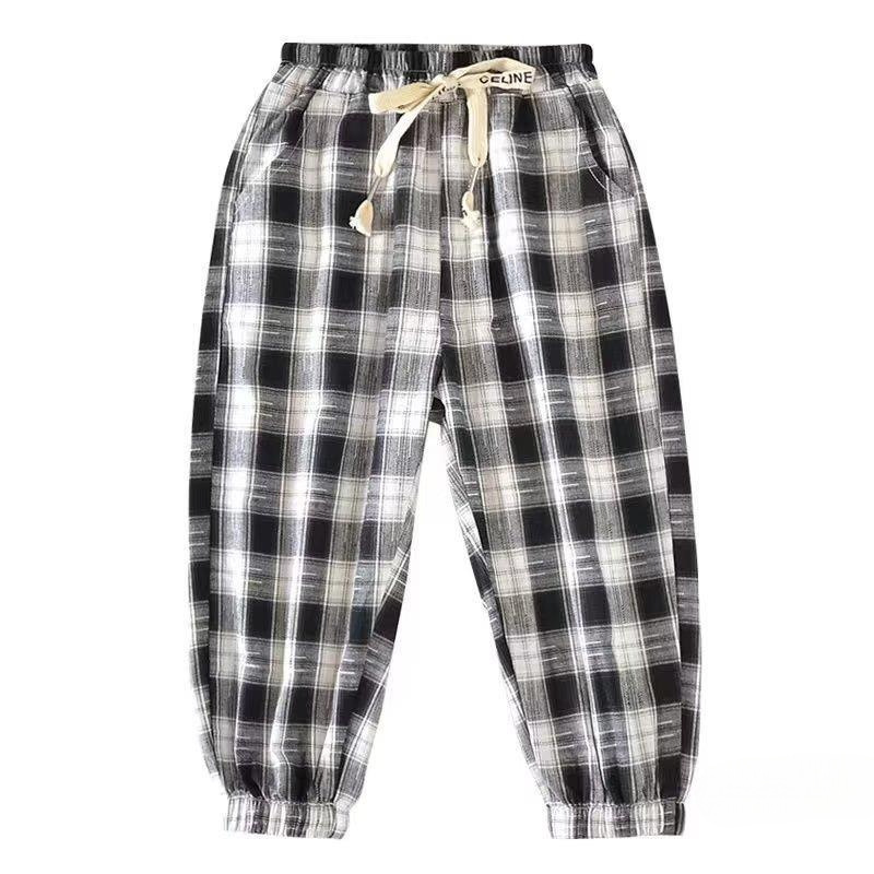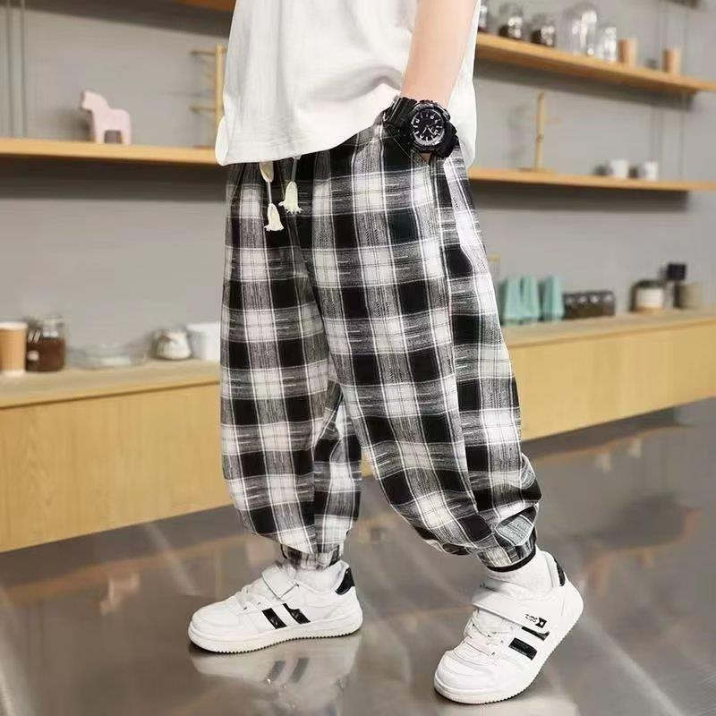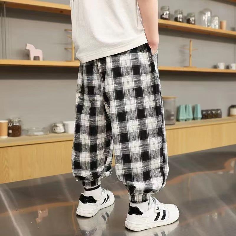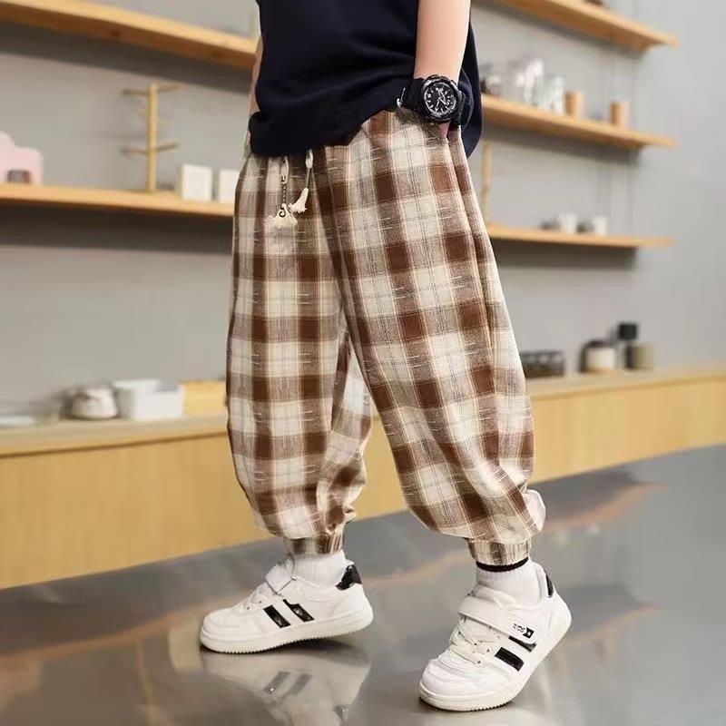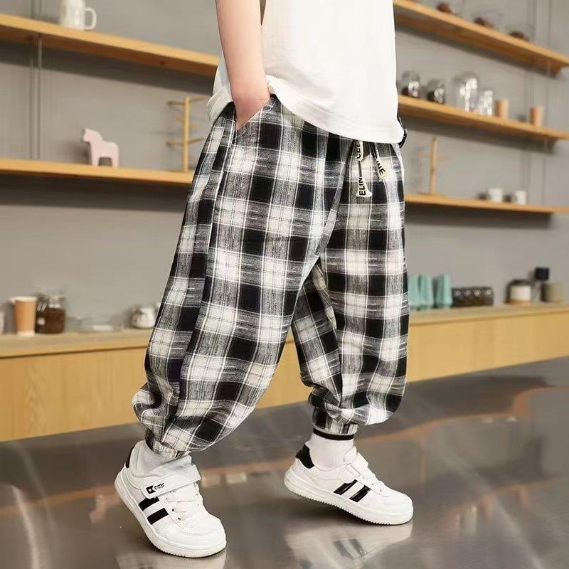 男童裤子夏季薄款新款韩版宝宝防蚊裤棉痞帅儿童格子裤潮长裤