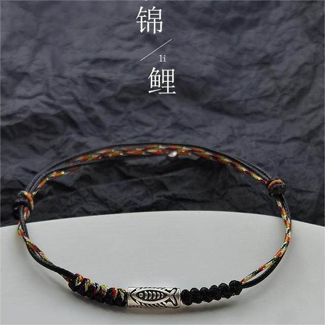 上岸银雕刻复古锦鲤编织手绳文艺考试好运手饰礼物