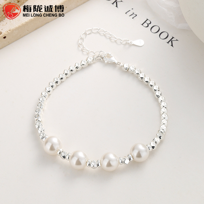 925纯银珍珠碎银子手链女夏小众轻奢珍珠手链ins气质高级感手饰品