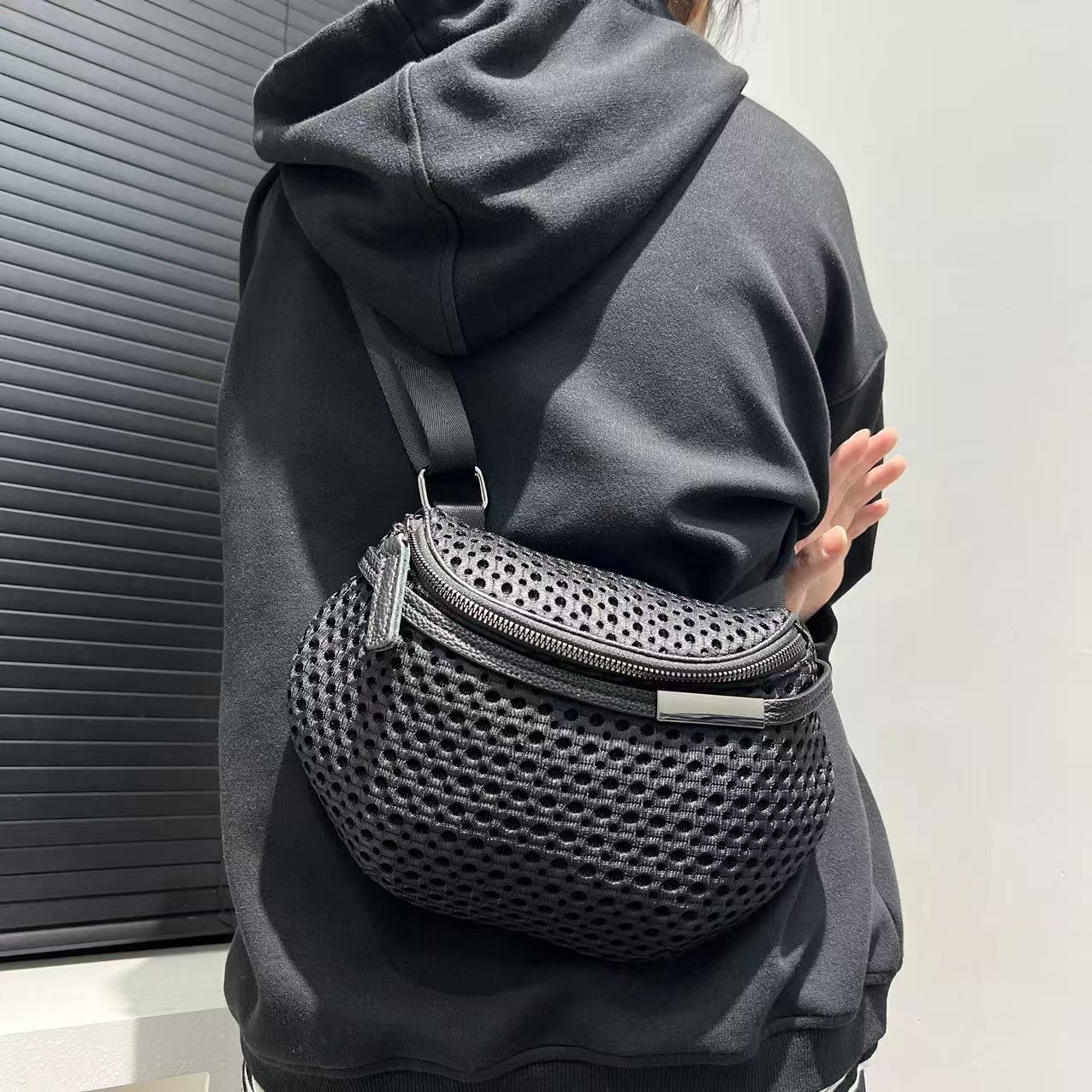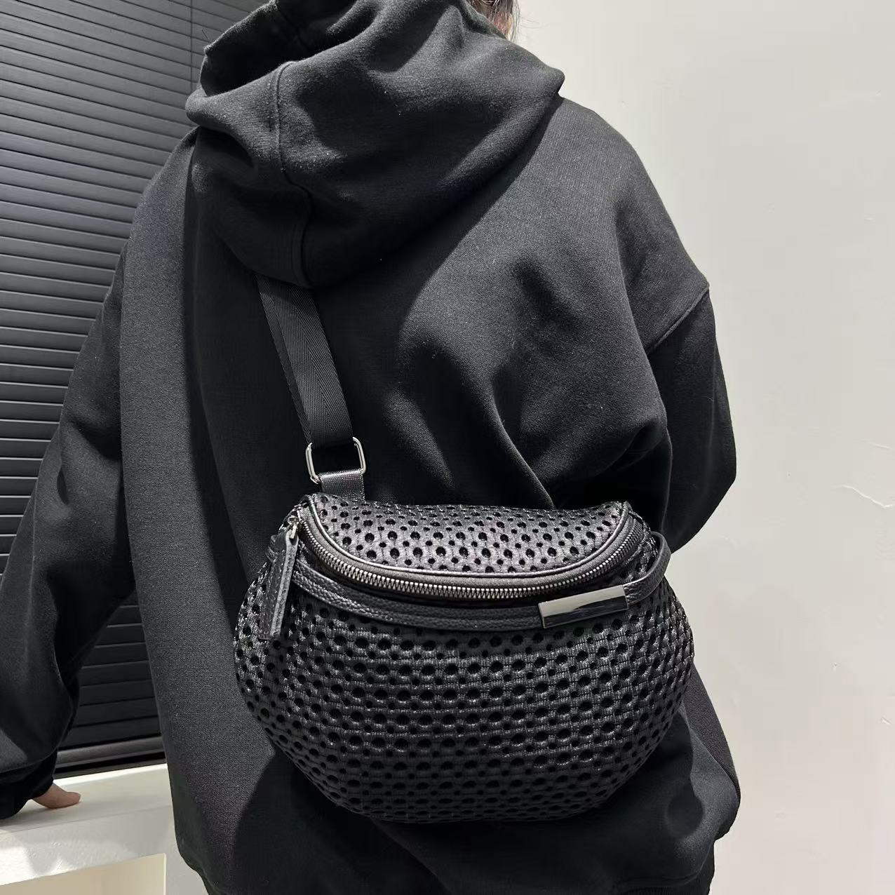 女士时尚轻便网面斜跨包简约百搭便携多隔层单肩包