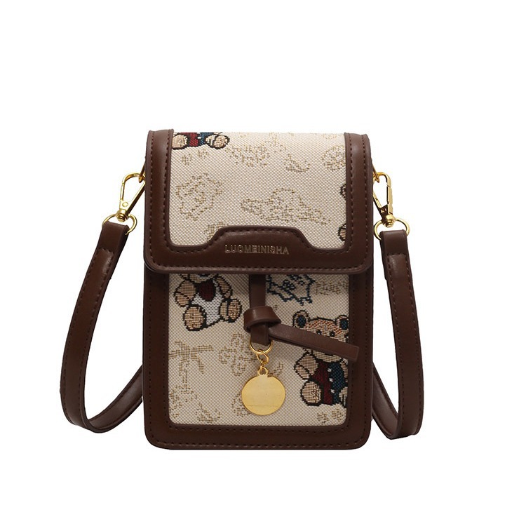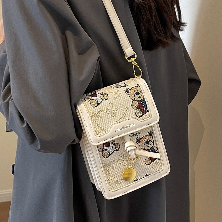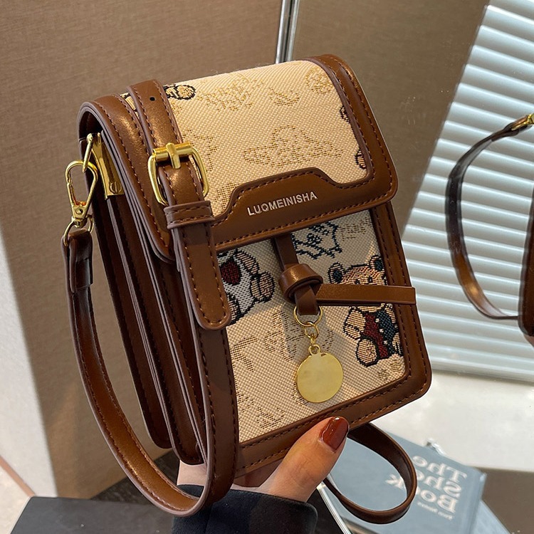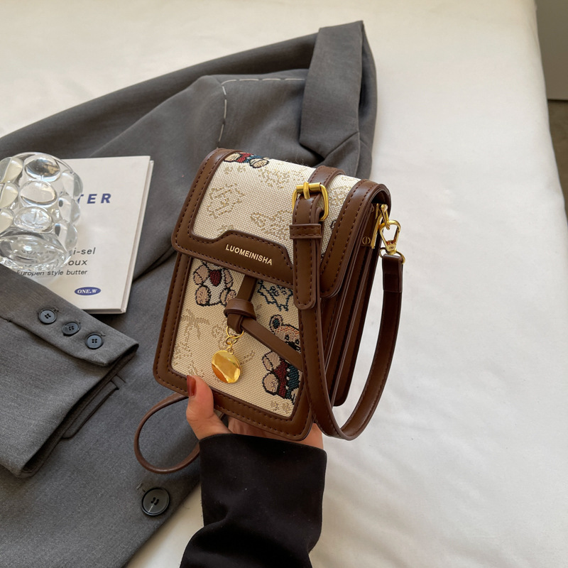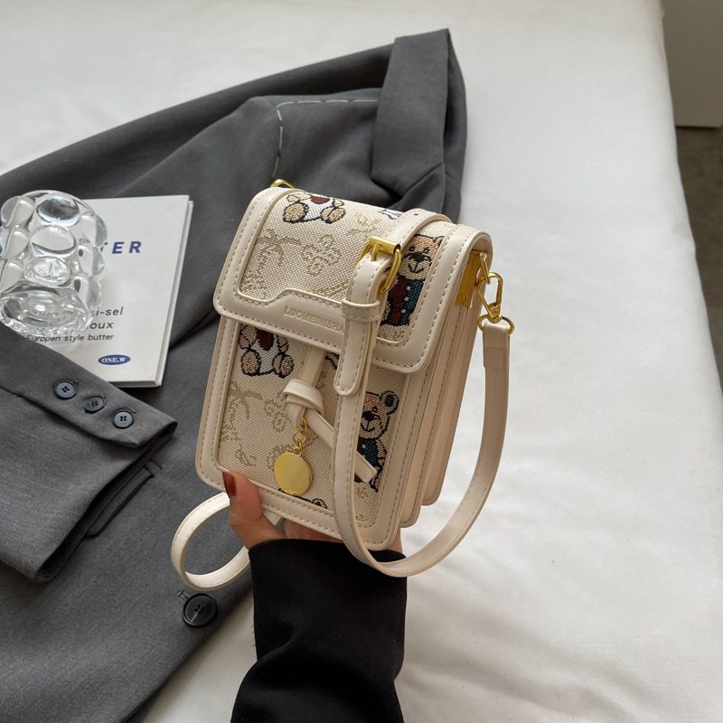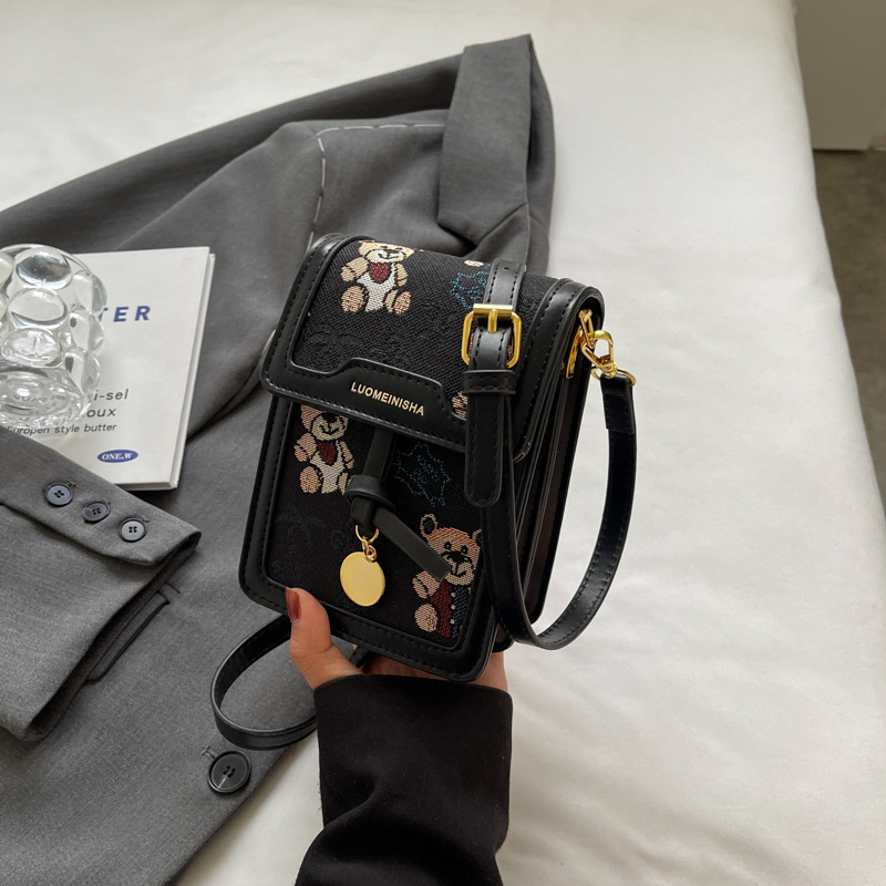 可爱小熊印花包包女新款时尚高级感单肩小方包迷你斜挎手机包