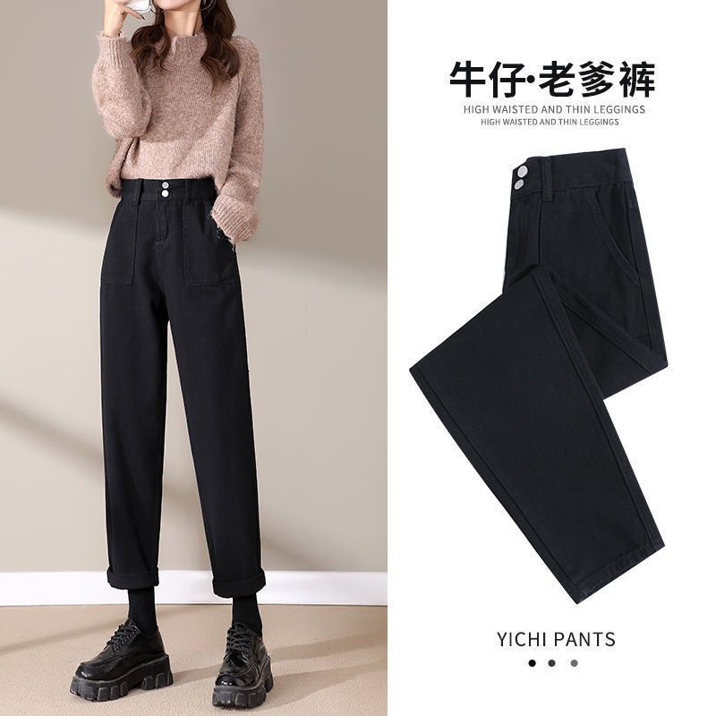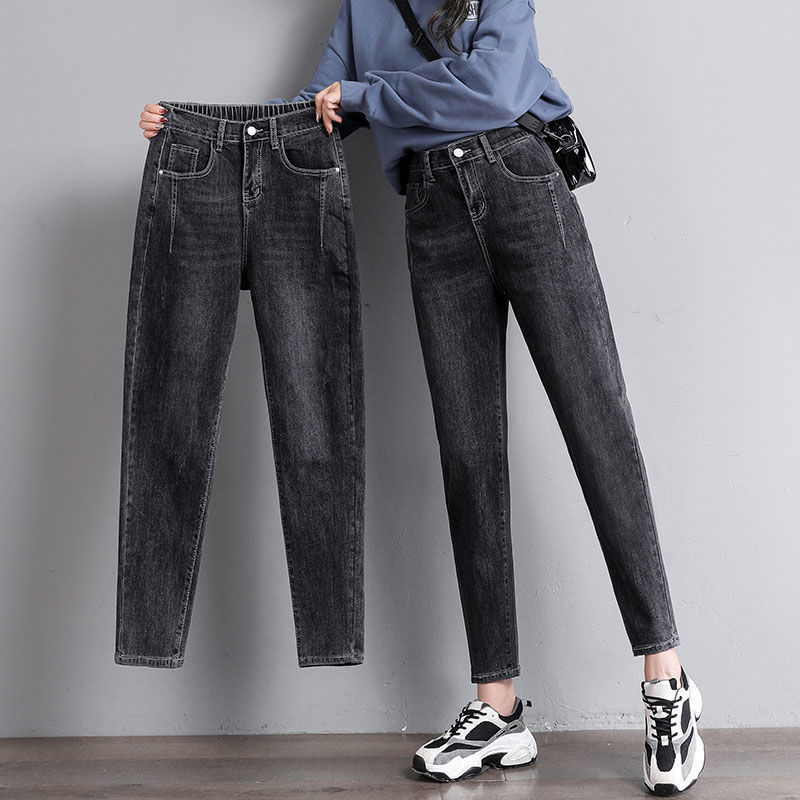 高腰老爹牛仔裤女年春夏新款韩版宽松显瘦松紧腰萝卜哈伦裤