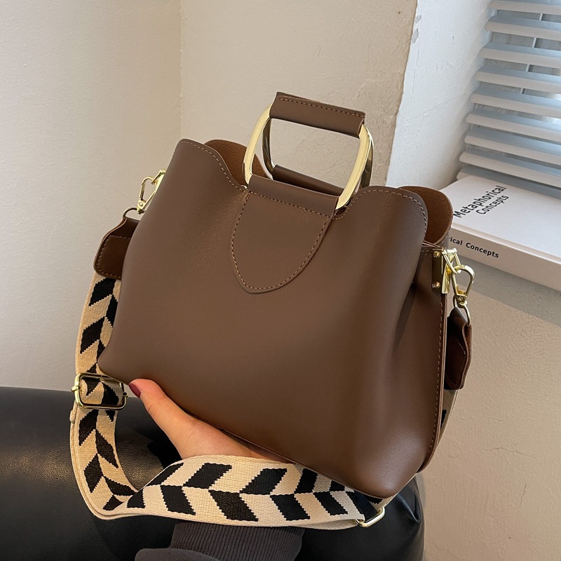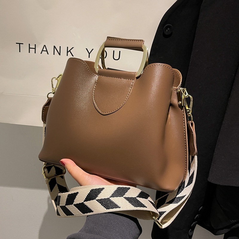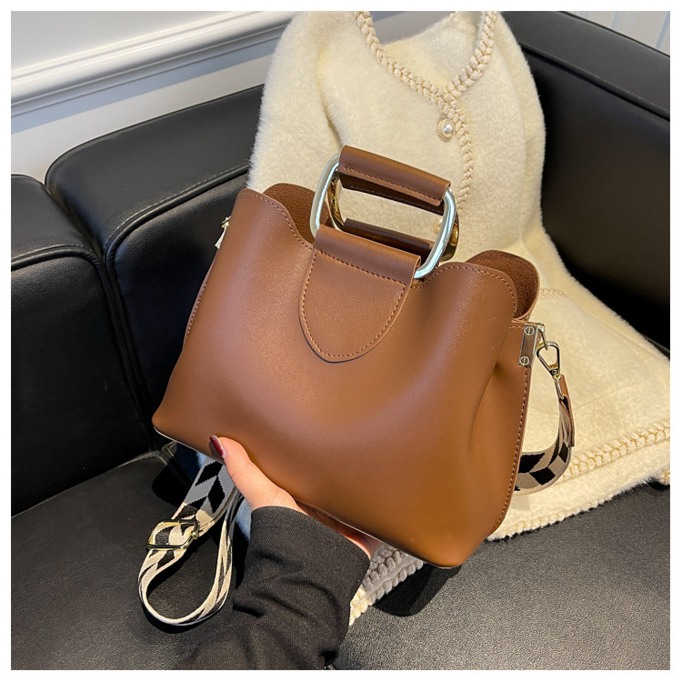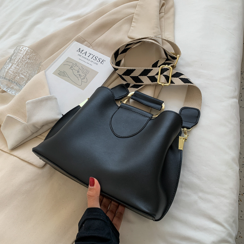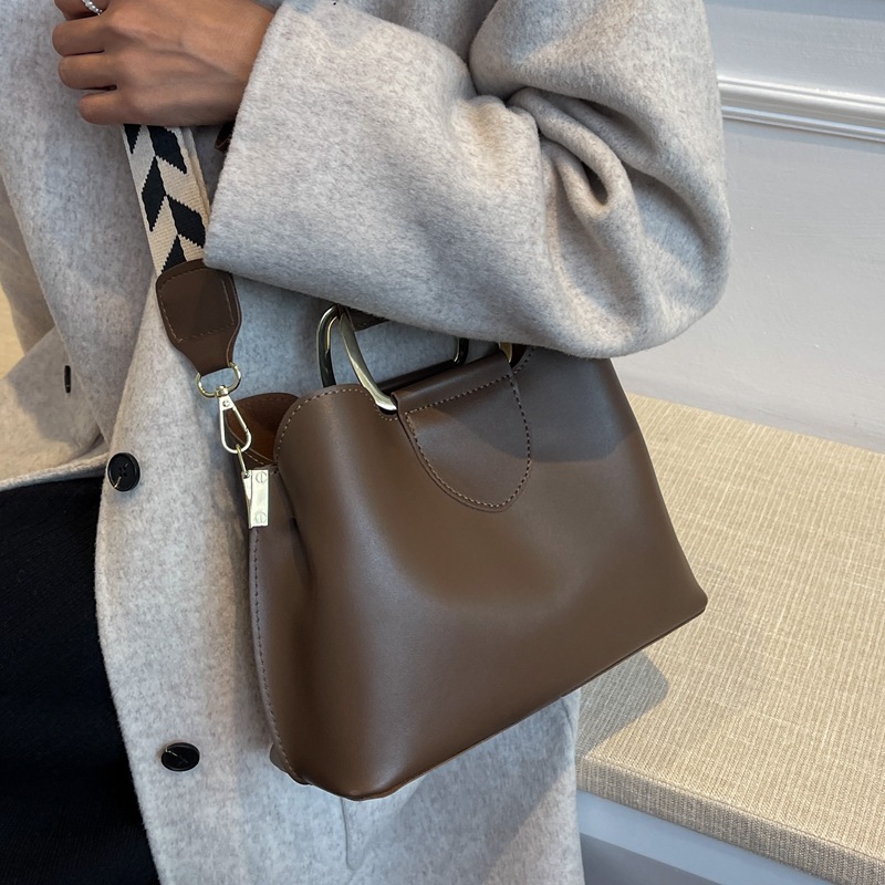 大容量包包女高级质感单肩包宽肩带斜挎包复古百搭手提水桶包