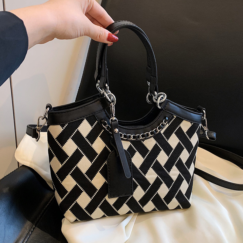 小包包女新款菱格圆筒包简约高级感单肩包个性宽带斜挎水桶包