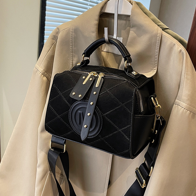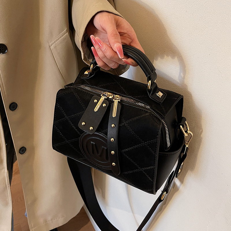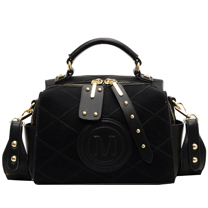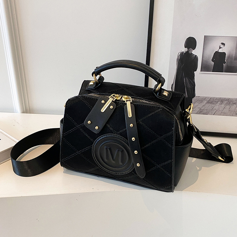 斜挎包韩版小众设计拼接复古单肩包大容量纯色PU通勤大容量包包女