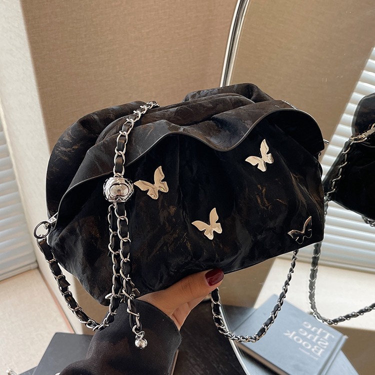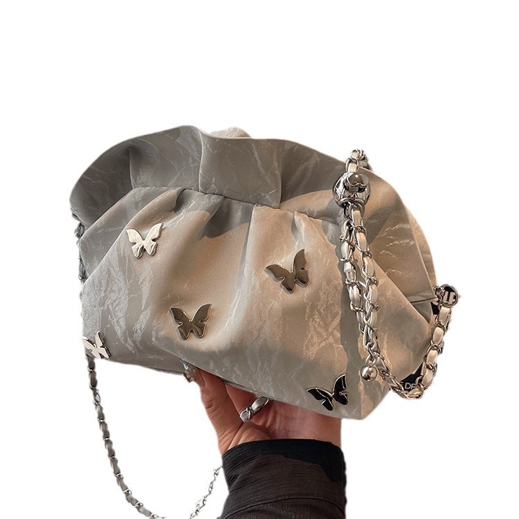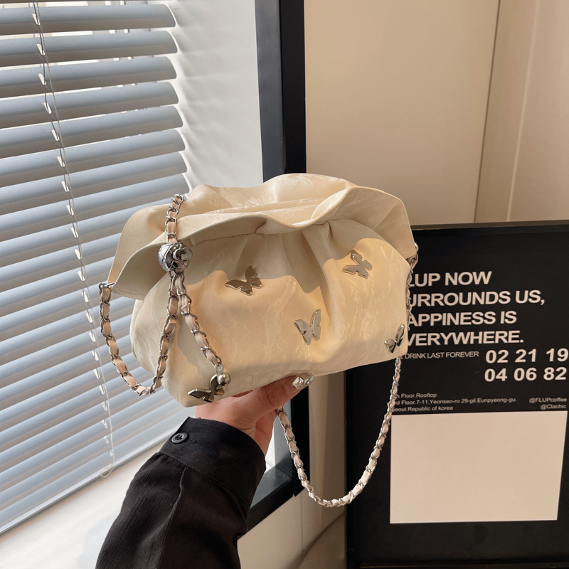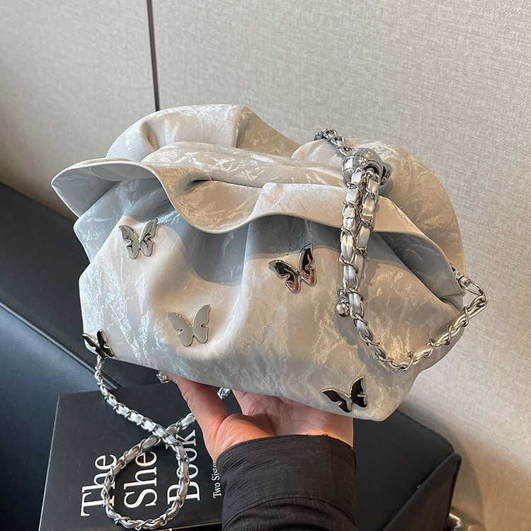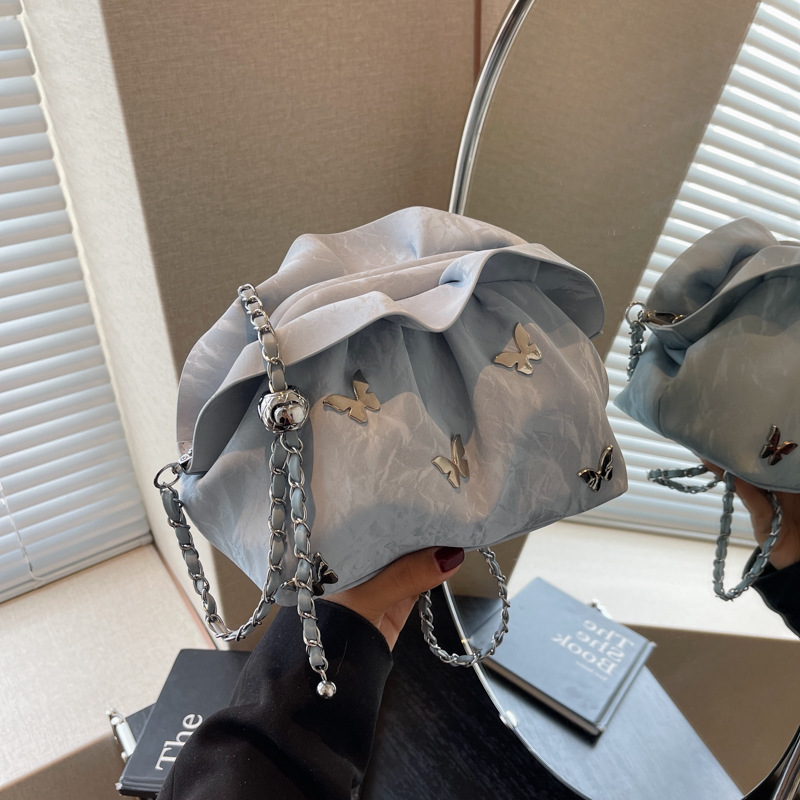 超火小众褶皱云朵包包女士新款潮百搭链条单肩斜挎包小包