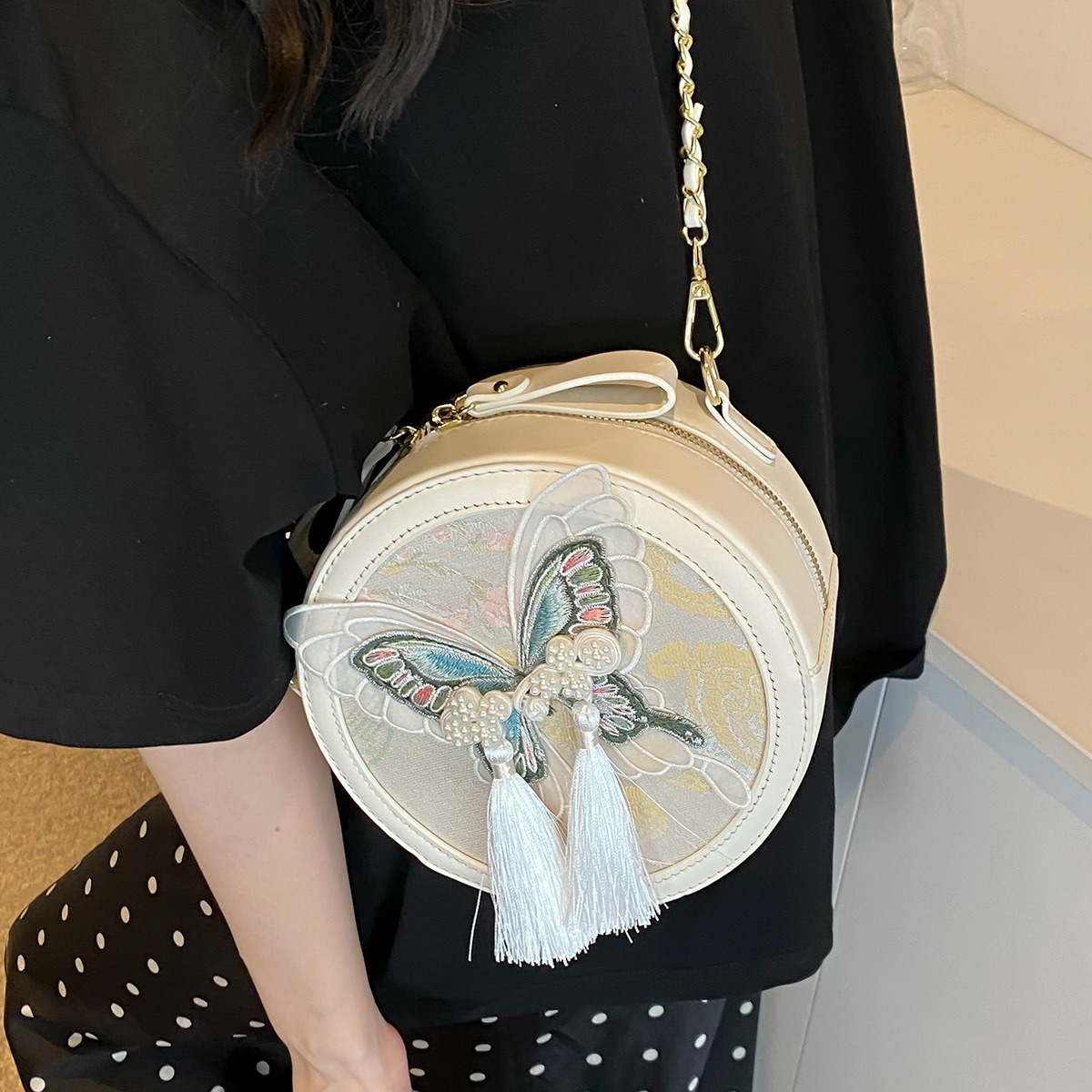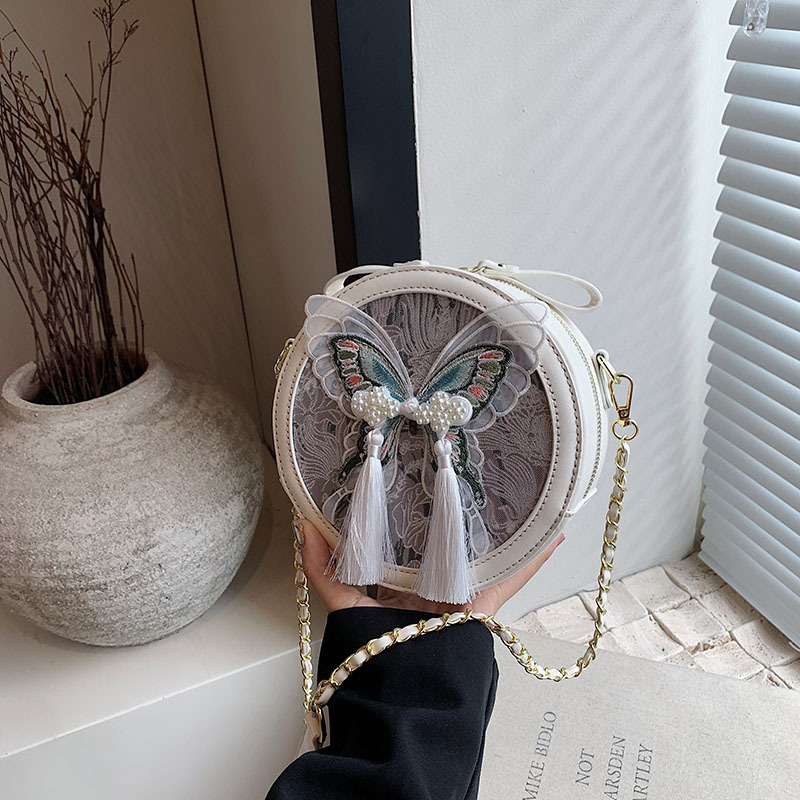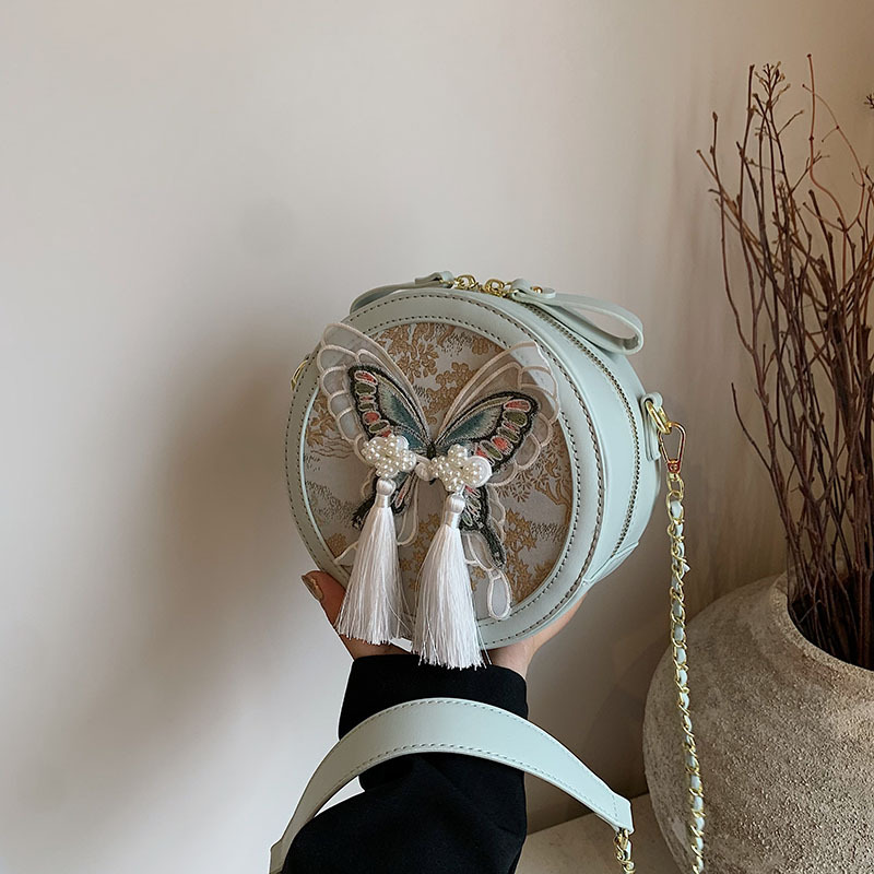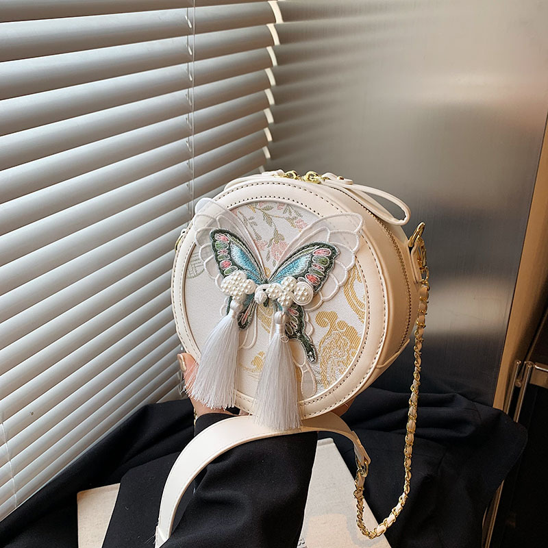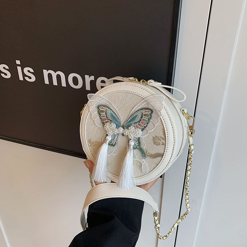 超火刺绣蝴蝶包包女新款潮时尚百搭链条斜挎包流行爆款小圆包