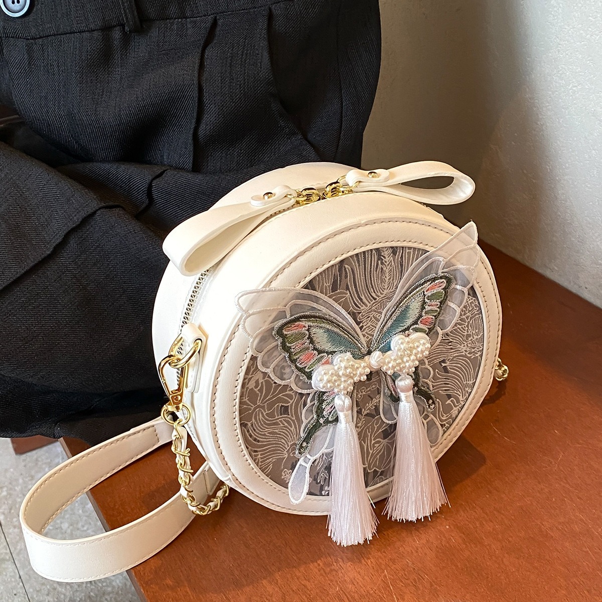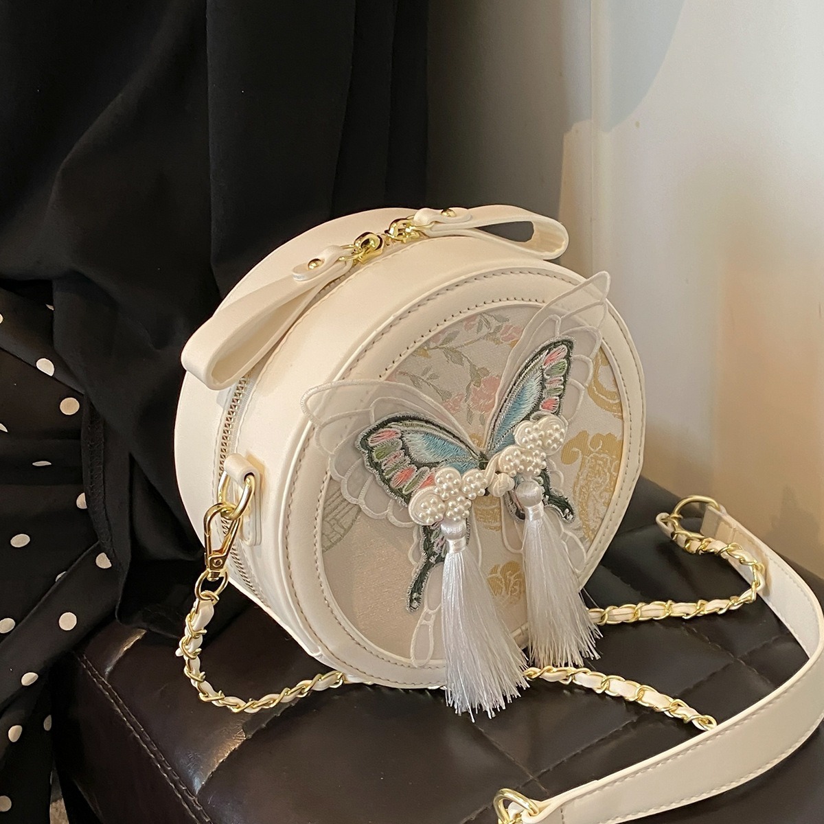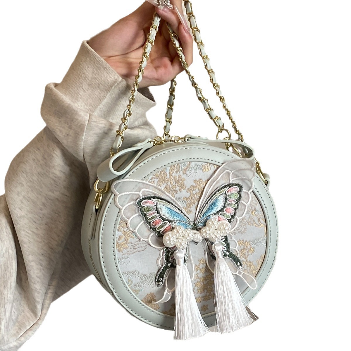 超火刺绣蝴蝶包包女新款潮时尚百搭链条斜挎包流行爆款小圆包
