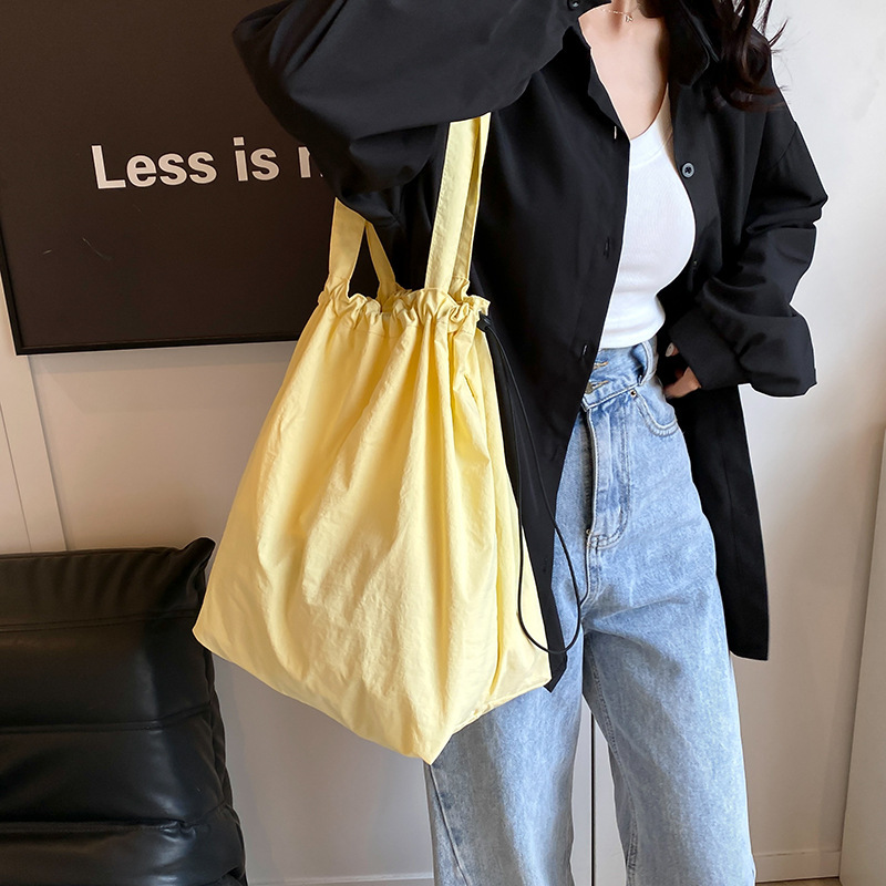 日系ins奶油黄夏日可爱甜美大学生尼龙袋大容量纯色单肩水桶包女