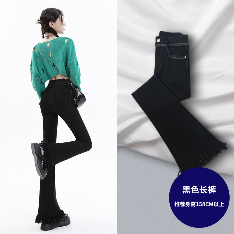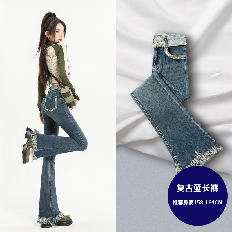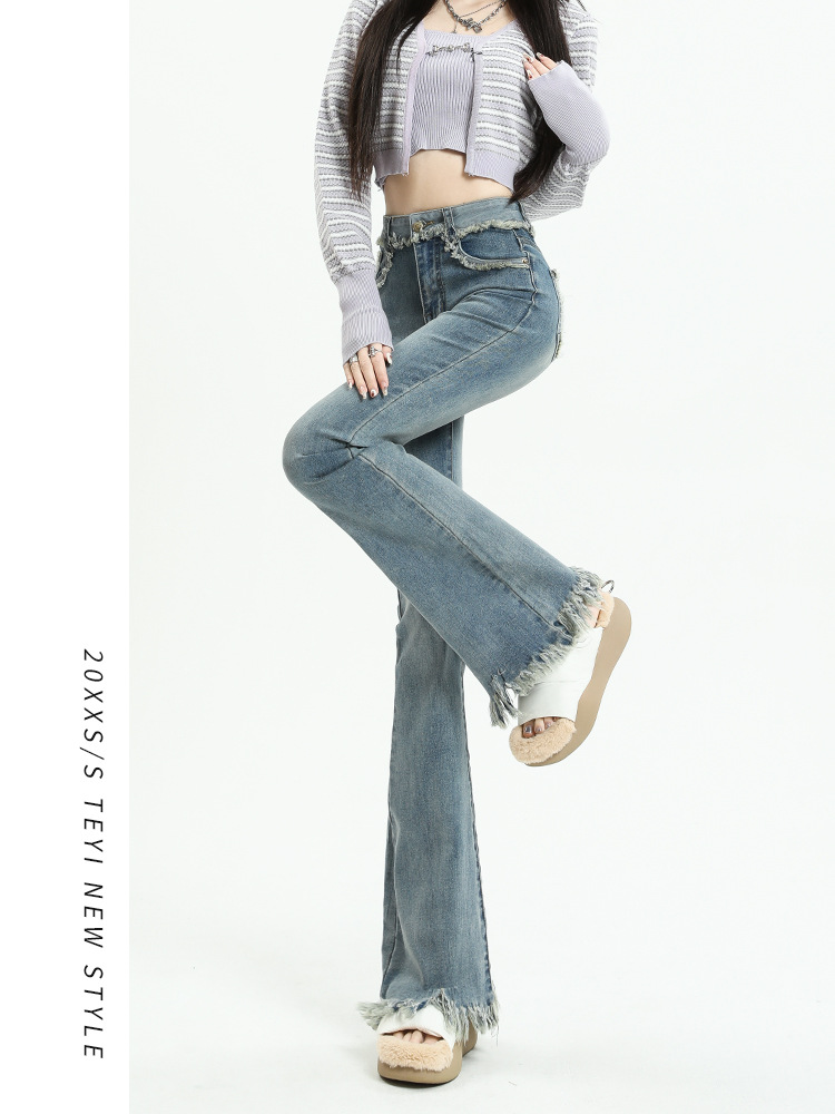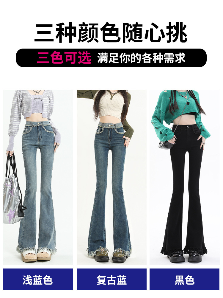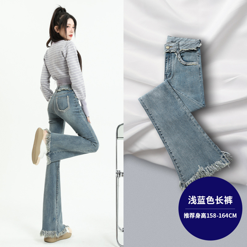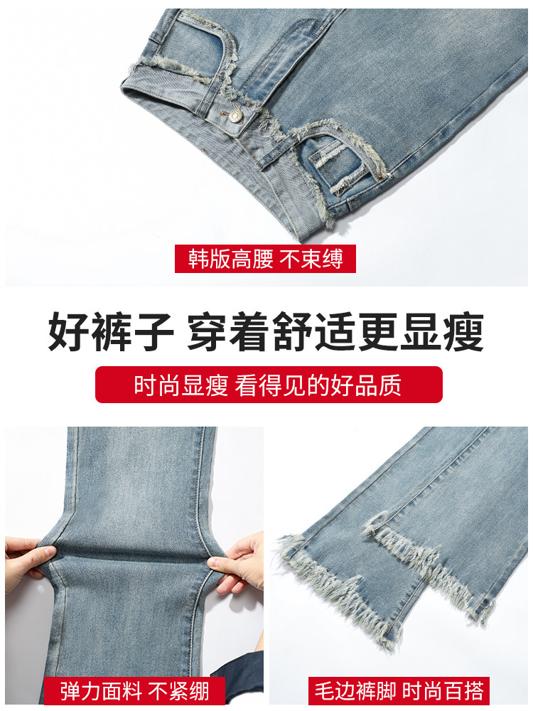 微喇牛仔裤女春秋年新款高腰显瘦小个子浅色毛边喇叭裤子女夏