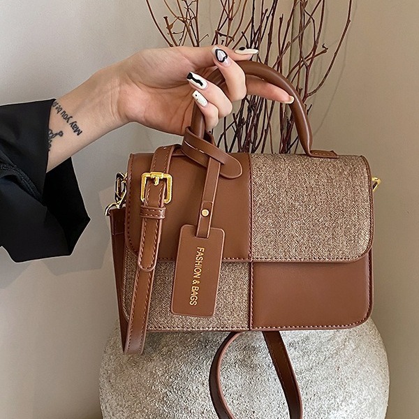 复古时尚撞色手提小包包新款简约百搭小方包质感斜挎包高级通