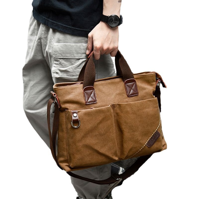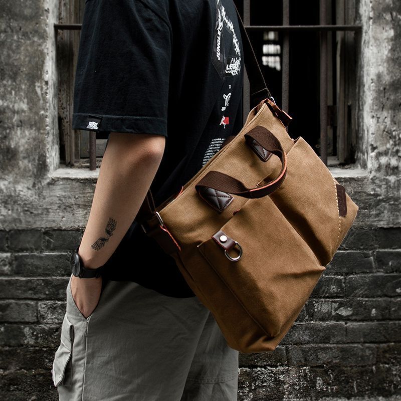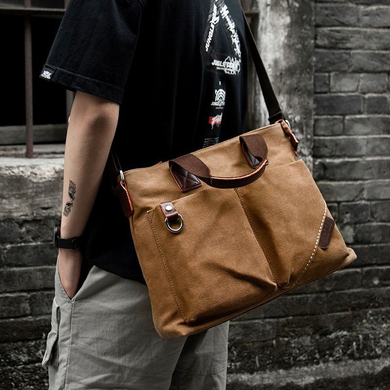 帆布斜挎包男潮流大容量挎包休闲通勤商务多功能手提包斜背包男包