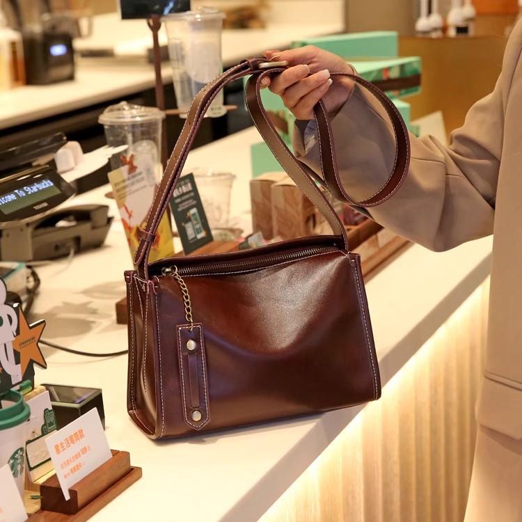 真皮包包新款斜挎包女复古大容量牛皮女包法式百搭小众单肩包